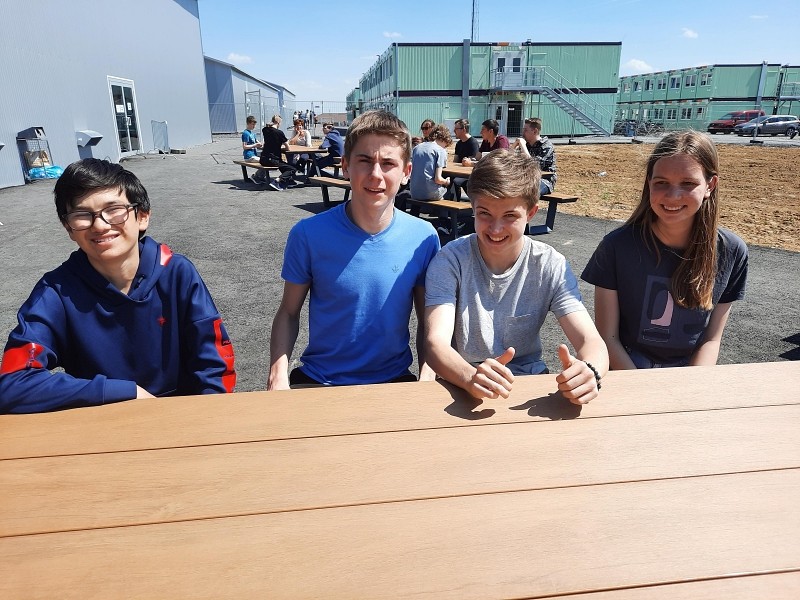 Nach der Flutkatastrophe vom letzten Sommer, bei der das Gebäude des Are-Gymnasiums aus Bad Neuenahr massiv beschädigt wurde und nun saniert werden muss, ist die Schule am Ortsrand von Grafschaft in Containern untergebracht. Die Preisverleihung fand in der Mensa, einem ehemaligen Discounter-Gebäude, statt.