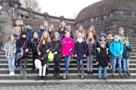 Am 8. März brachen wir pünktlich um halb neun nach Koblenz auf, um eine Probe der Rheinischen Philharmonie zu besuchen. Als wir dort ankamen, sind wir erstmal am Rhein entlang zum Deutschen Eck gelaufen, um die Statue von Kaiser Wilhelm und den Zusammenfluss von Rhein und Mosel zu sehen. Dort machten wir auch viele Fotos. Danach gingen wir zum Görreshaus, diesmal an der Mosel entlang. Die Probe sollte um 10 Uhr beginnen. Freundlich wurden wir von Frau Wendt empfangen, die uns eine kurze Einführung gab, an deren Ende ein Quiz zu den Instrumenten des Orchesters stand. Dann gingen wir in den Probenraum und die Probe begann. Sie dauerte etwa eine Stunde. „Appalachian Spring“ von Aaron Copland stand auf dem Probenplan, und wir konnten fast alle Instrumente des Orchesters (Holz- und Blechbläser, Streicher, Schlagwerk und die Harfe) hören und sehen. Das Stück war sehr entspannend und beruhigend. Der Dirigent korrigierte in der Probe schon minimalste Fehler, die wir gar nicht gehört hätten. Begeistert waren wir von seinen manchmal seltsamen, fast tänzerischen Bewegungen. Im Anschluss an die Probe haben wir das Quiz aufgelöst und konnten unser Feedback zur Probe abgeben. Erstaunt waren die meisten, dass das Saxophon kein Instrument des Sinfonieorchesters ist. Nach dem Probenbesuch kam ein weiteres Highlight unseres Ausfluges. Wir durften alleine im Forum „shoppen“ gehen. Max glaubte schon, sein Handy verloren zu haben, aber Frau Dethof fand es dann doch in den Tiefen seines Rucksacks. Beruhigt konnten wir dann alle mit dem Bus zurück nach Montabaur fahren. Es war ein toller Ausflug!!