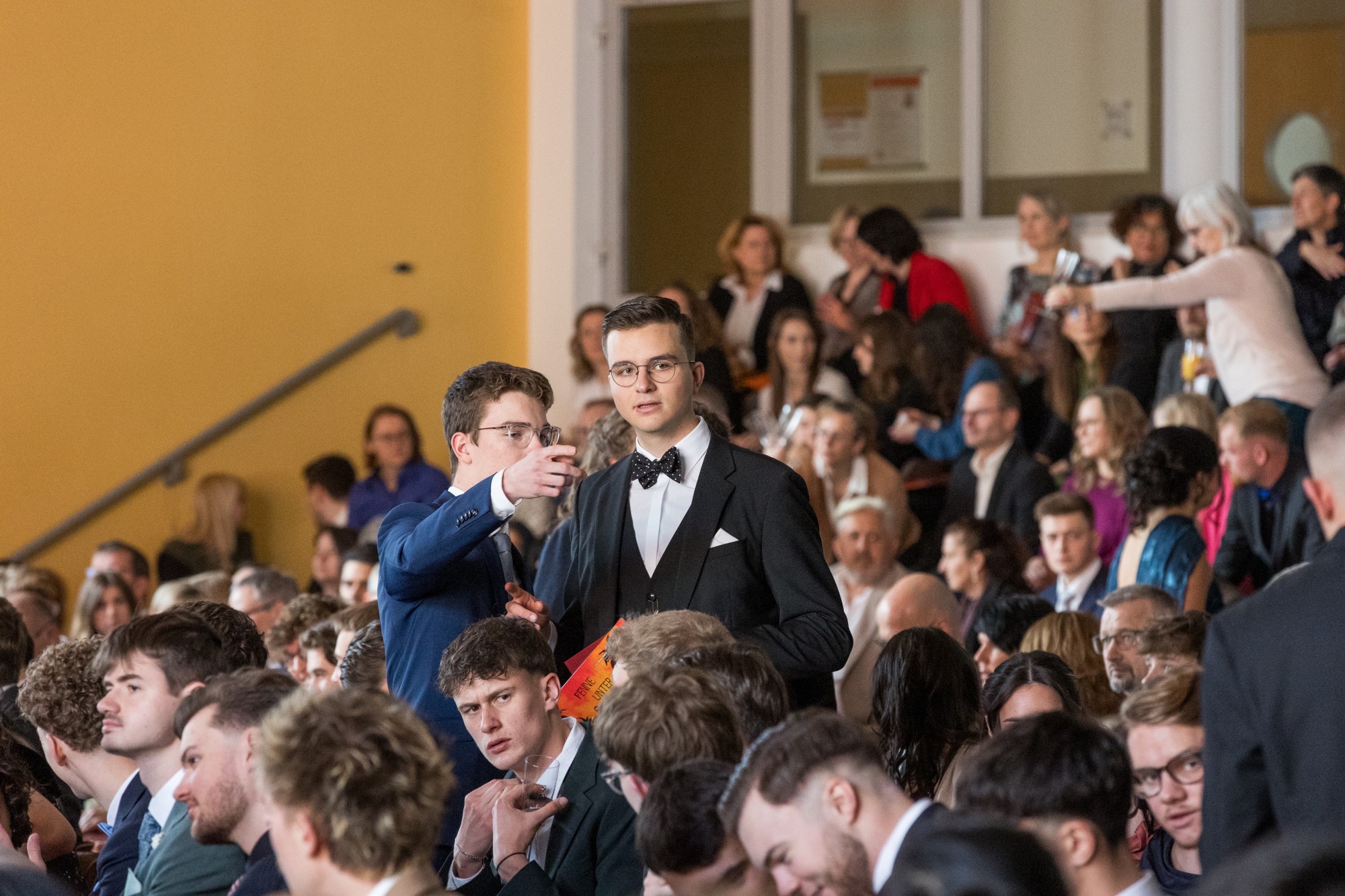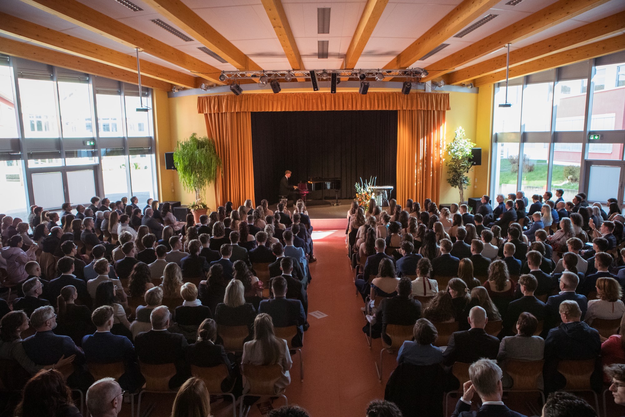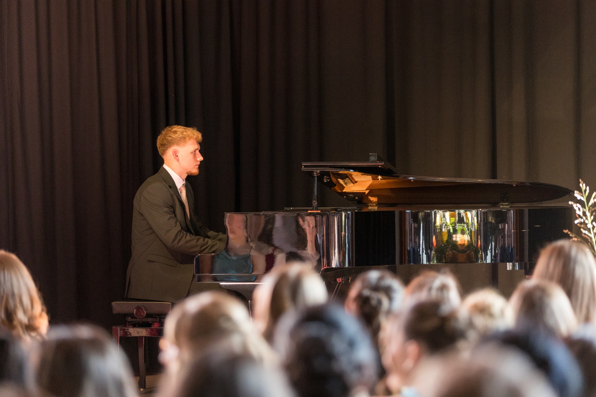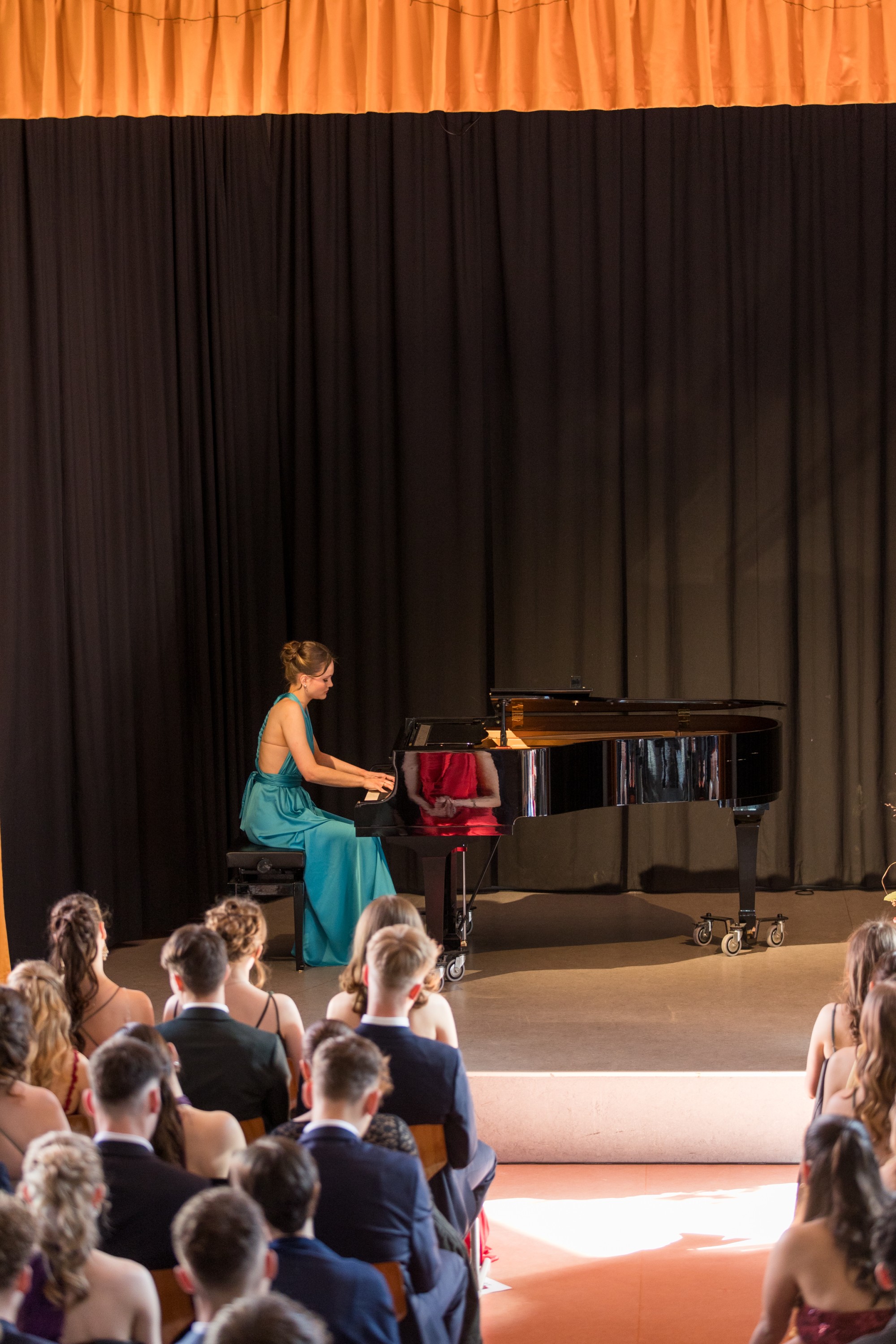 Für die weitere musikalische Gestaltung der Feier sorgten die beiden Absolventen Greta Ketzer und Finn Jaspert, die auf dem Flügel Kompositionen von Ludovico Einaudi spielten.