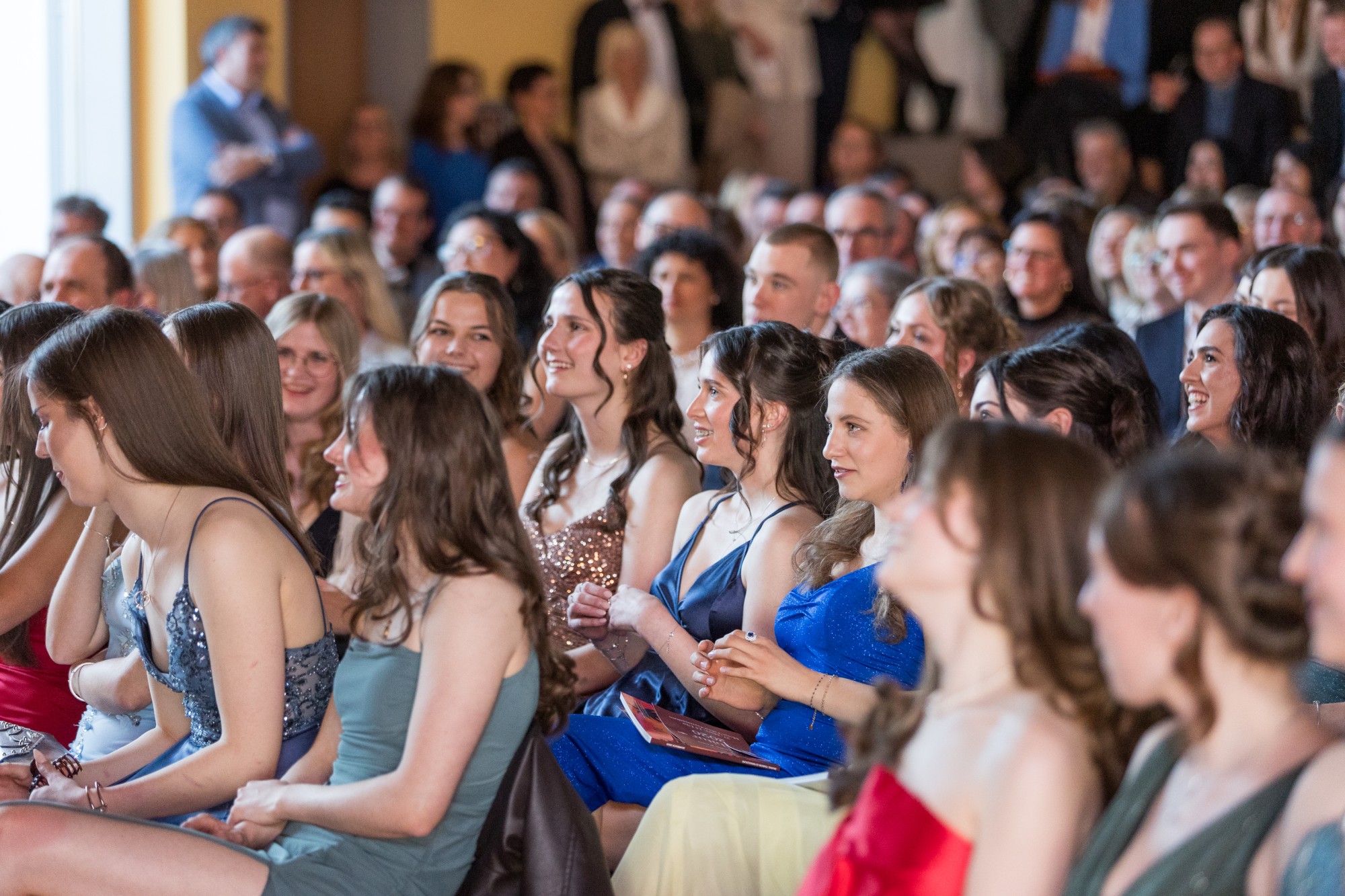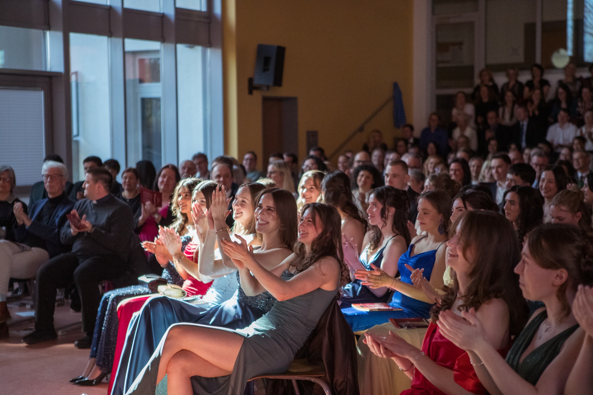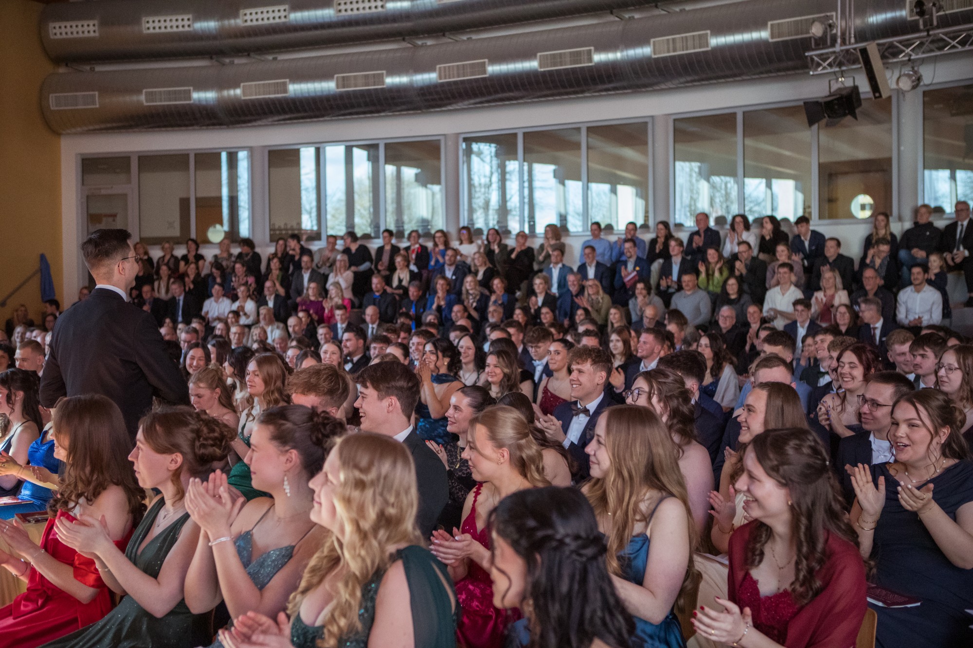 Die Feier startete mit einem Gesangsbeitrag des 13er-Oberstufenchors unter der Leitung von Daniela Dott. Mit den beiden Stücken „Only Time“ (Enya) und „Memories“ (Maroon 5) entstand eine feierliche Stimmung im Publikum.