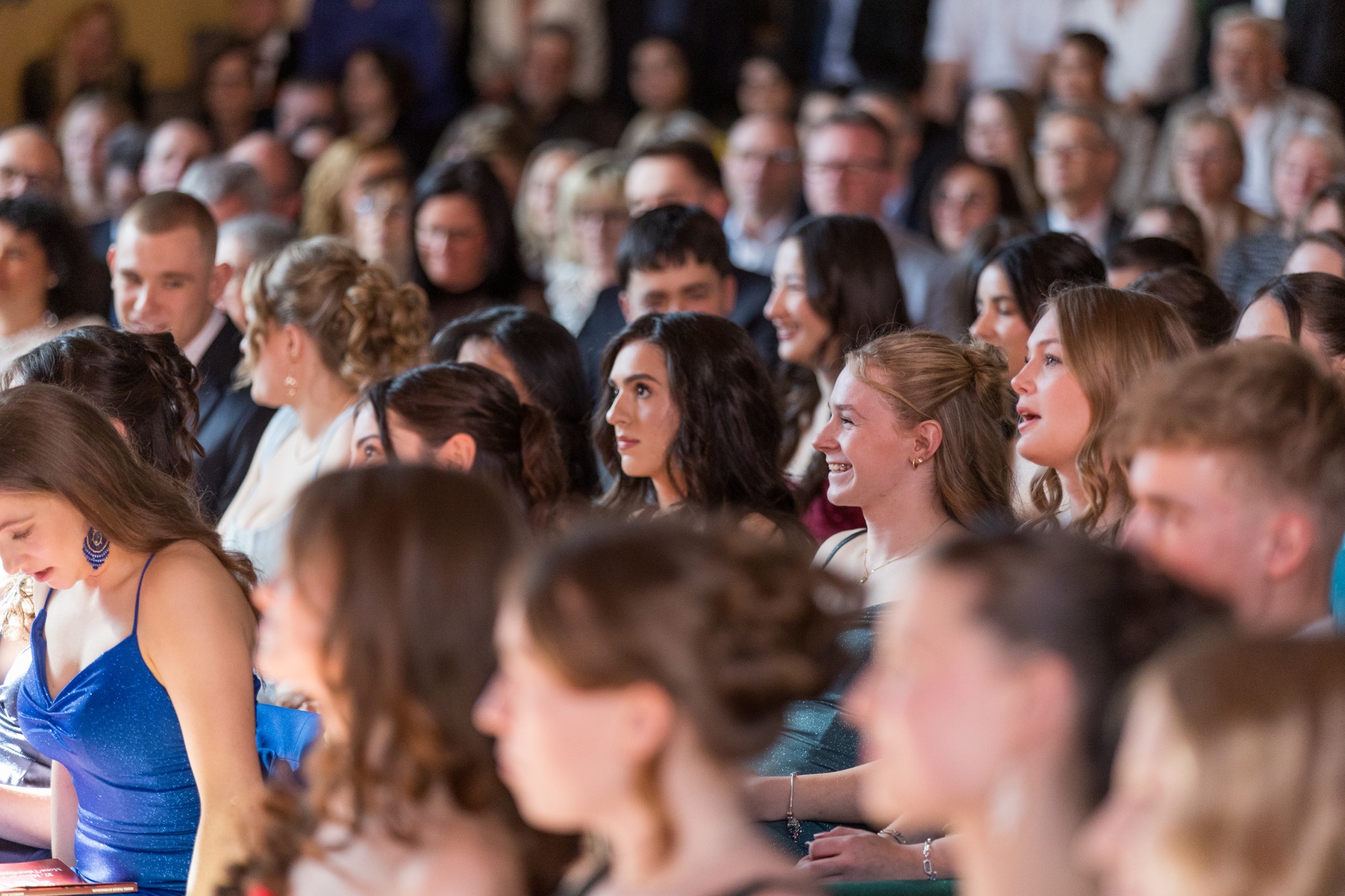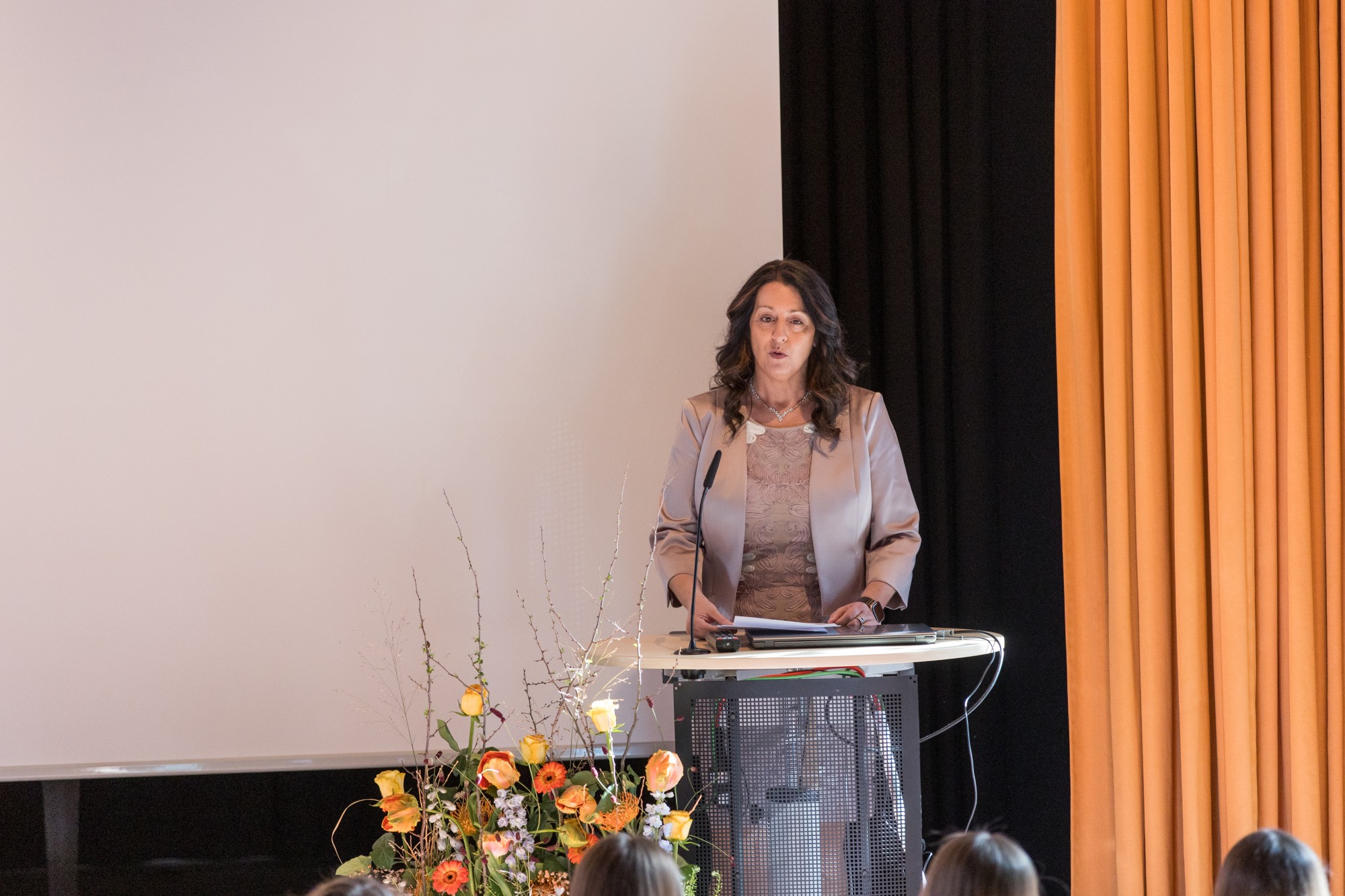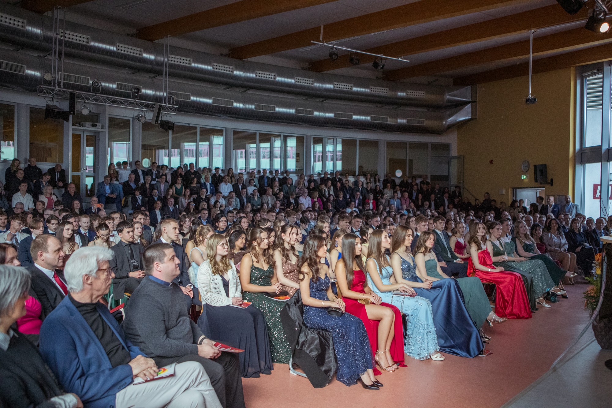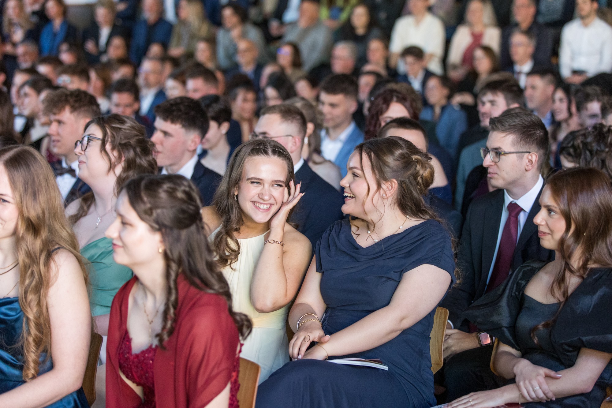 Die Feier startete mit einem Gesangsbeitrag des 13er-Oberstufenchors unter der Leitung von Daniela Dott. Mit den beiden Stücken „Only Time“ (Enya) und „Memories“ (Maroon 5) entstand eine feierliche Stimmung im Publikum.
