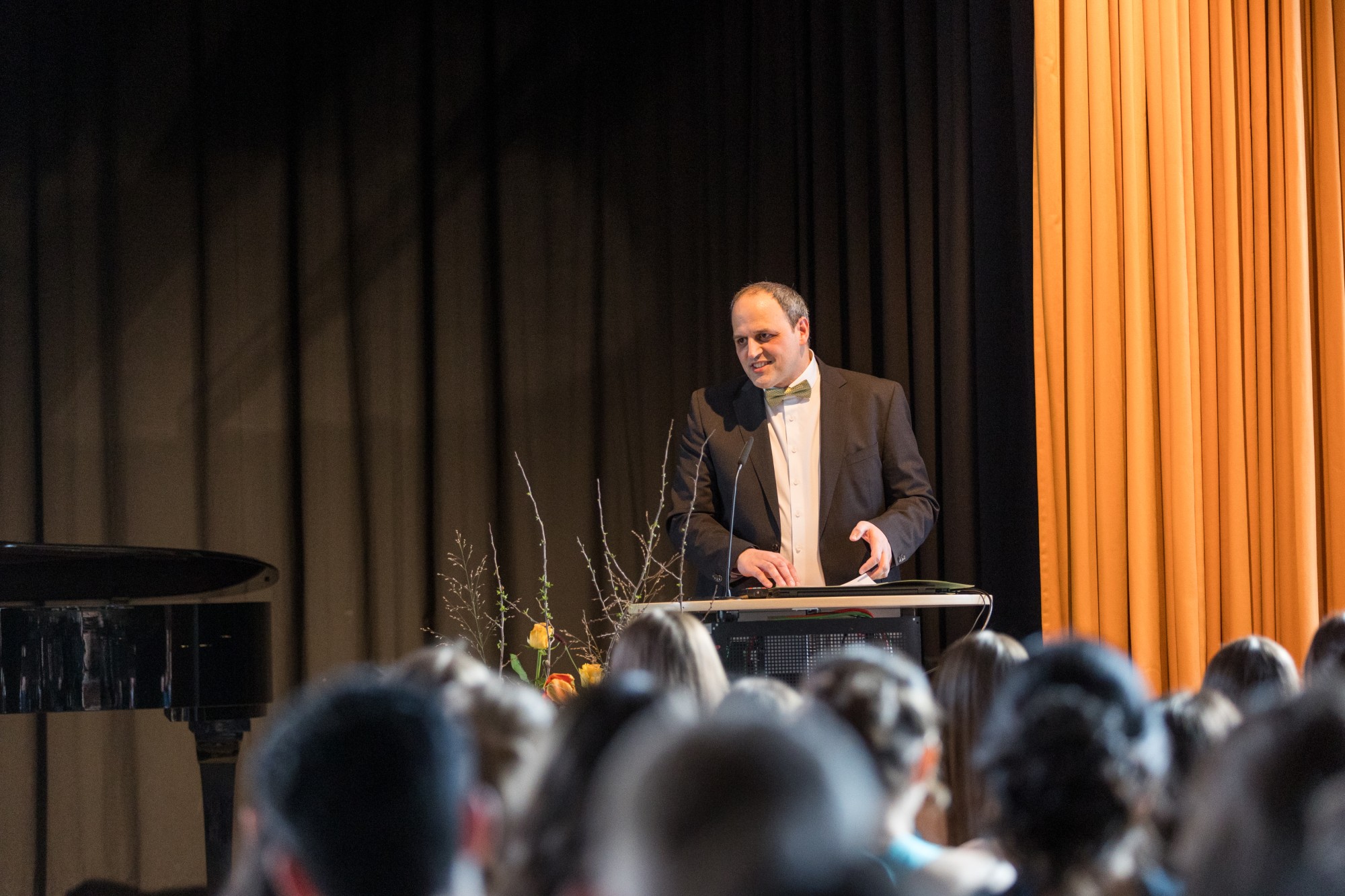 Thema der Rede des Schulleiters Martin Zimmermann war, mit Blick auf den nun kommenden neuen Lebensabschnitt, der Begriff der Inspiration, die eine große Rolle in unserem Leben spielt, sich aber leider nicht immer automatisch einstellt. Inspiration, so sagte er, ist oft von Momenten und Personen in unserem Leben abhängig. Herausforderungen und Anstrengung, aber auch Scheitern sind mit Inspiration verknüpft. Zimmermann zitierte mit einem Augenzwinkern Thomas Edison: „Genius is 1% inspiration and 99% perspiration“ In diesem Sinne forderte er den Abiturjahrgang auf, offen für das eine Prozent zu sein und den Rest mit Wissen, Neugier und Fleiß zu erreichen.