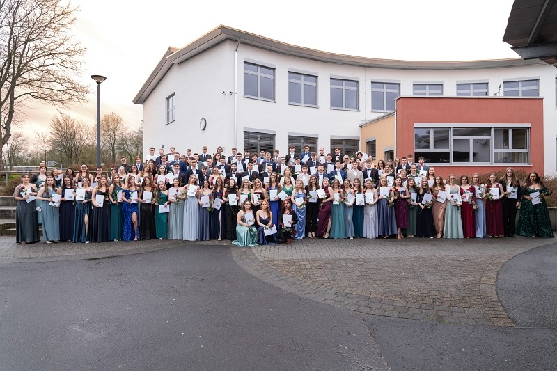Damit war der Weg bereitet, zunächst für die Auszeichnungen für besondere Leistungen. Der Buchpreis des Landrats des Westerwaldkreises ging an Emily Schmidt (Nentershausen), mit der Traumnote 1,0 Jahrgangsbeste. Sie wurde von der Schule zusammen mit Jana Breiden (Hilgert) und Selina Kloft (Niedersayn) für die Studienstiftung des deutschen Volkes vorgeschlagen, die ebenfalls beide mit 1,0 abschließen konnten. Der Buchpreis der Ministerin für vorbildliche Haltung und beispielhaften Einsatz in der Schule wurde an Jana Görg (Siershahn) vergeben. Hier die weiteren Ehrungen für die Jahrgangsbesten: BK – Viola Kümmerling (Montabaur), Biologie – Emily Schmidt (Nentershausen), Chemie – Jana Breiden (Hilgert) und Lennart Kempf (Dernbach), Deutsch – Selina Kloft (Niedersayn) und Aileen Reinke (Ransbach-Baumbach), Erdkunde – Emily Schmidt (Nentershausen), Ethik – Jakob Kunz (Montabaur), Evangelische Religion - Emily Schmidt (Nentershausen), Fremdsprachen – Pauline Schmidt (Montabaur), Geschichte – Lennart Kempf (Dernbach), Informatik – Elena Schweitzer (Ruppach-Goldhausen), Katholische Religion – Selina Kloft (Niedersayn), Mathematik – Luca Schmidt (Nentershausen), Physik – Jakob Kunz (Montabaur) und Elena Schweitzer (Ruppach-Goldhausen) und Sozialkunde – Pauline Schmidt (Montabaur).
