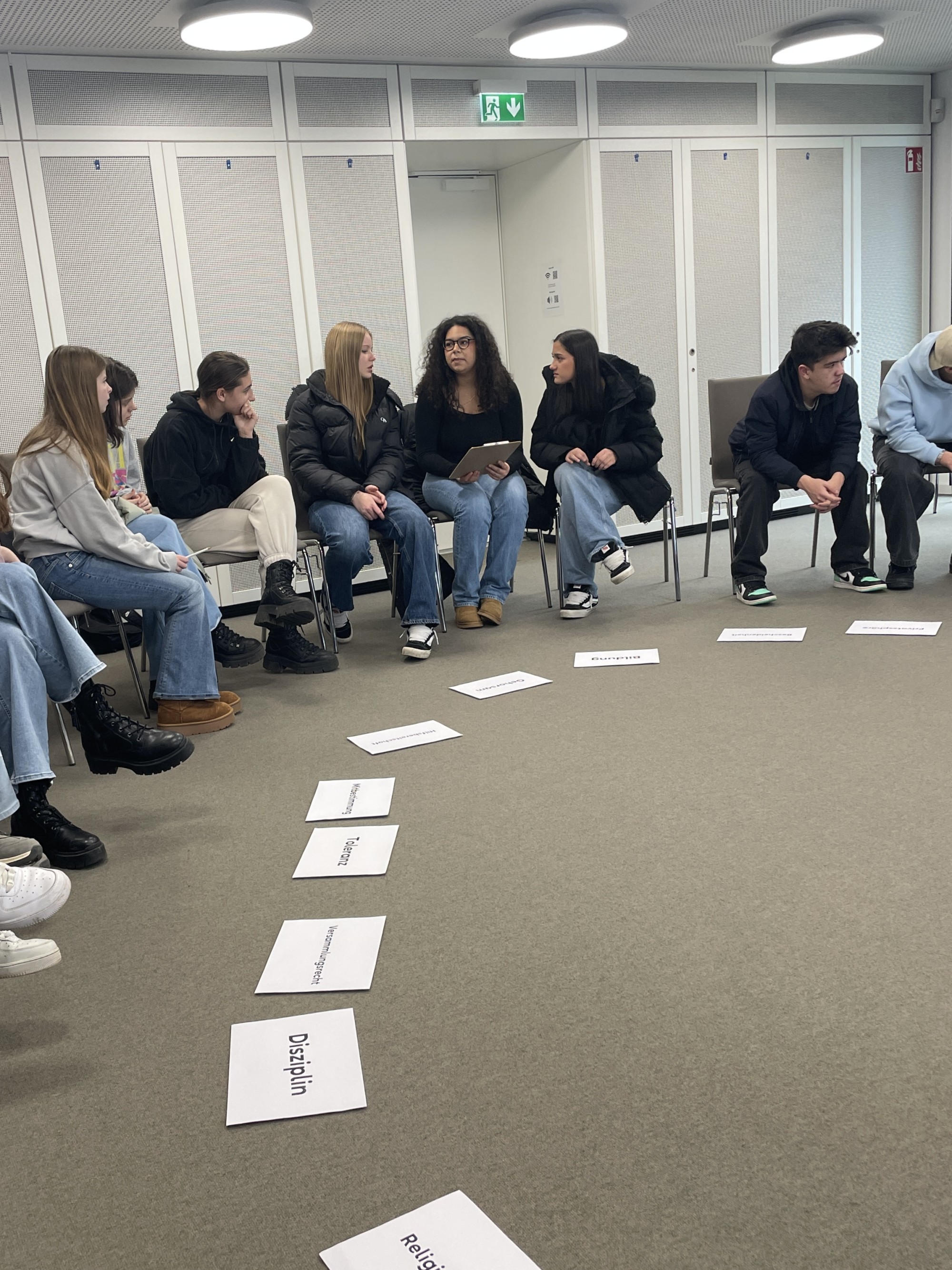 Nach unserer Ankunft wurden wir in zwei Gruppen eingeteilt: Ein Teil nahm an einem Workshop zum Thema „Anfänge der Demokratie“ teil, während der andere Teil eine Führung durch die Dauerausstellung im Museum machte. Danach tauschten die Gruppen.