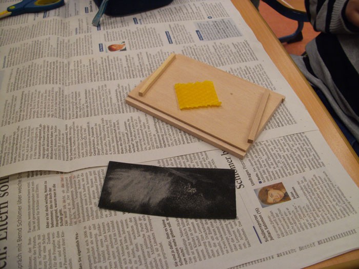 Unsere Mitschülerin Charlotte Schleppegrell steuerte von der Imkerei ihres Vaters noch etwas Wachs bei. Am folgenden Donnerstag begannen wir mit der Arbeit.