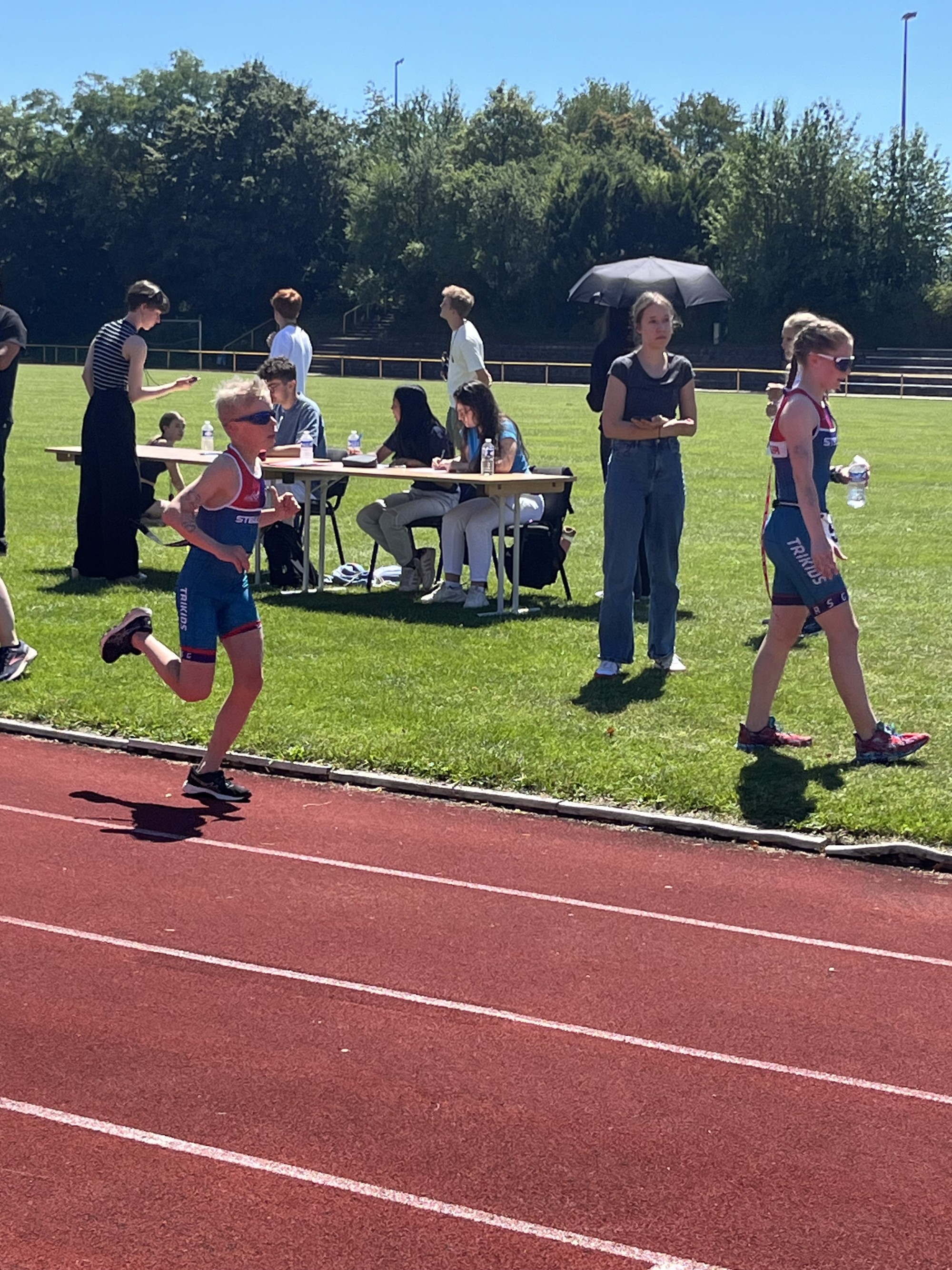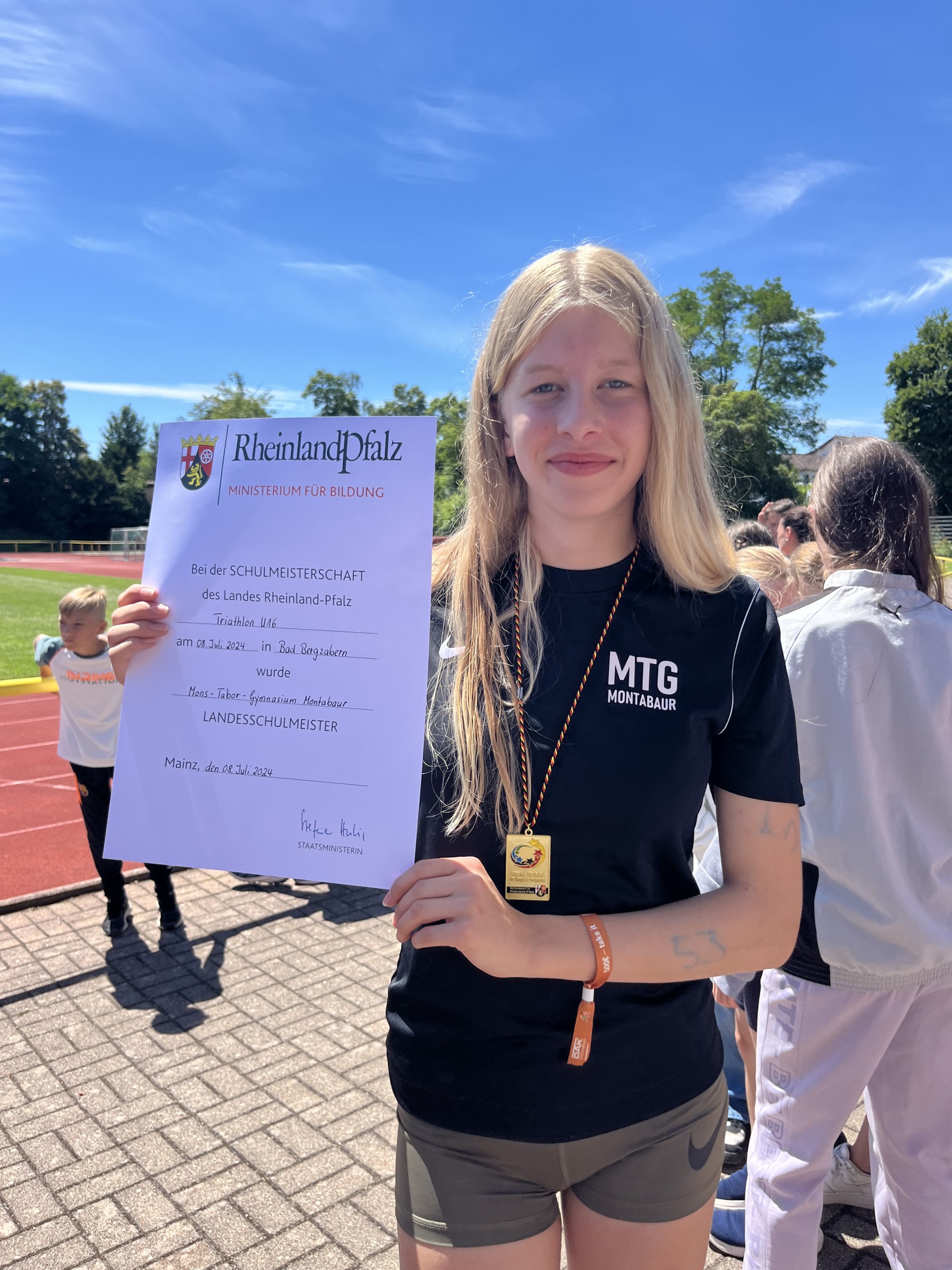 Insgesamt starteten elf Schülerinnen und Schüler des Mons-Tabor-Gymnasiums Montabaur, wovon die sechs besten in die Wertung eingingen. Trotz einiger Wechsel im Team konnten vor allem die leistungsstarken Mädels der RSG Montabaur das Max-Planck-Gymnasium Trier hinter sich lassen. Lucie Bäcker, die in diesem Jahr bei der Deutschen Meisterschaft im Duathlon Gold und Silber holte, Ida Wendland, Emilia Solbach und Lucie Bäcker, ebenfalls ganz vorne mit dabei. Auch Louis Janke, der trotz gerissener Fahrradkette mit eisernem Willen sein Rad ins Ziel schob und Neuling Luis Tissen, der seinen allerersten Triathlon erfolgreich absolvierte, hatten Spaß und konnten ihren Erfolg feiern.