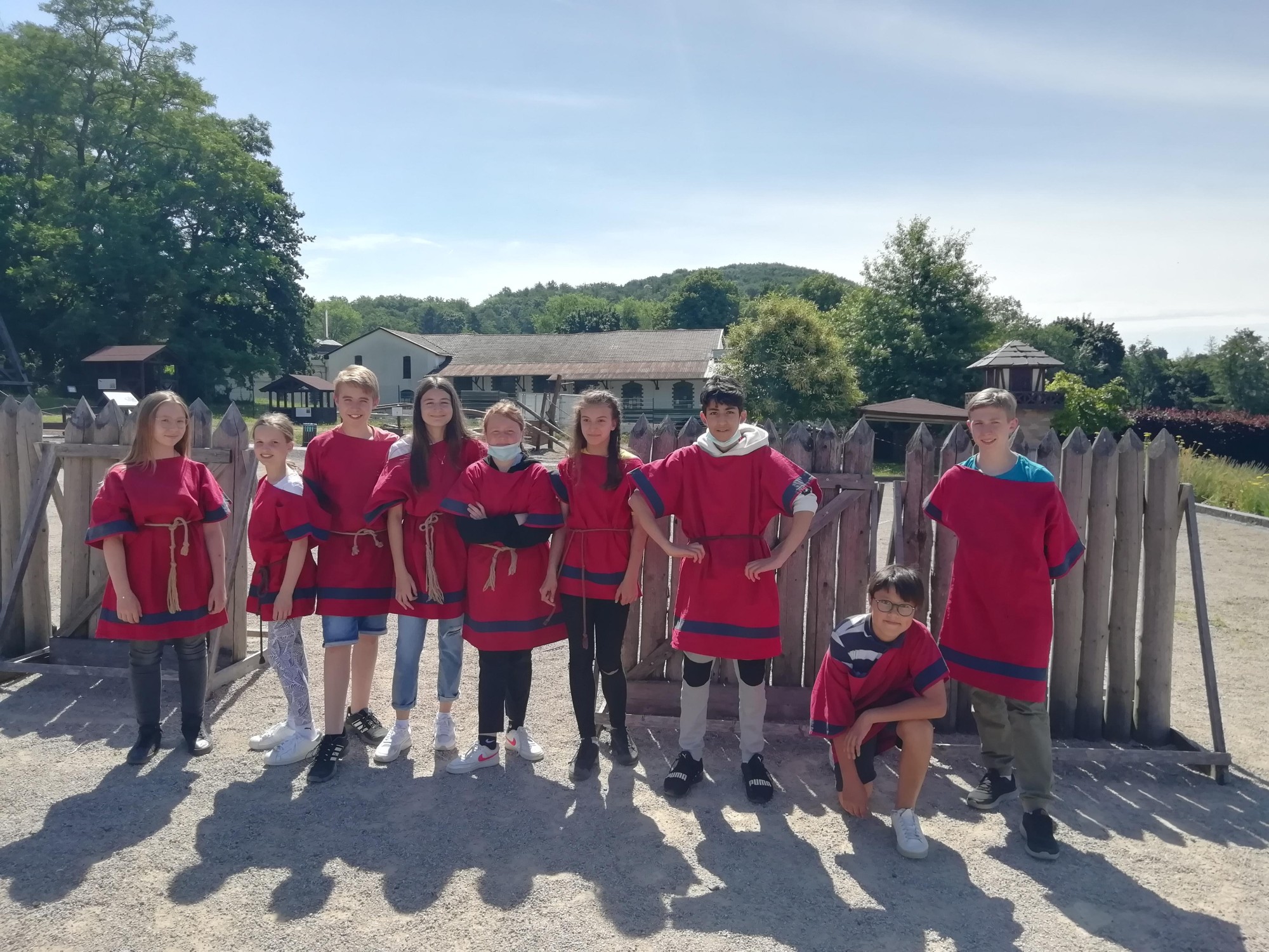 Nachdem wir uns bei den Spielen ausgetobt hatten, war es Zeit ein Brot zu essen. Nach der Stärkung war es Zeit für jede Menge spannende Rätsel. Eine Rally! Damit wir die Römer Welt noch besser kennenlernen konnten liefen wir herum und lösten diese Rätsel. Dann durften wir erfahren wie die Römer früher gewohnt haben. Indem wir eine Hütte besichtigt haben, konnten wir sehen und fühlen, dass der Schlaf damals auf harten Matratzen nicht sehr angenehm war. Nach einer erneuten spannenden Tour durch die Schlafhütten hieß es Pause machen und wir durften wir die Römer Welt auf eigene Faust erkunden.