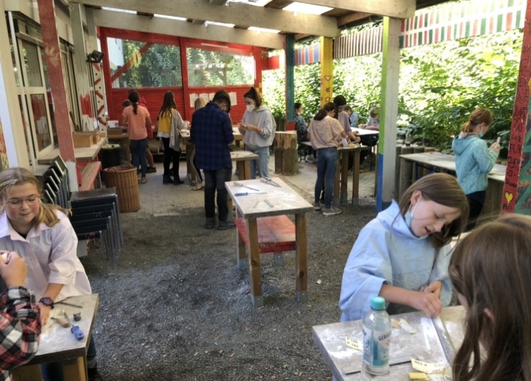 Meine Klasse, die 5e, reiste am 22. September 2021 nachmittags an. Vor der Fahrt hatten wir uns in kleine Gruppen aufgeteilt. Jeder Gruppe wurde ein eigenes (kleines) Haus zugeteilt. In diesen Häusern gab es Schlafzimmer, Badezimmer und auch eine Küche, da wir in den Häusern frühstückten. Für das Frühstück musste jede Gruppe selbst sorgen. Das war eine interessante Erfahrung. Das Mittag- und Abendessen fand für alle im Speisesaal statt. Während der zwei Tage in Hübingen gab es verschiedene, gemeinsame Aktivitäten, wie z.B. Specksteine formen und Spiele zum Team Building. Unsere Klassenlehrerin und unsere Paten veranstalteten außerdem eine Rallye, bei der es um Schnelligkeit und das Lösen von Aufgaben ging. Diese hat viel Spaß gemacht. Auch der Talentwettbewerb, der am zweiten Abend stattfand, war sehr beliebt. Es wurden viele lustige und kreative Showeinlagen der Schülerinnen und Schüler vorgeführt. Die Fahrt war insgesamt sehr schön und wir konnten uns alle besser kennenlernen.