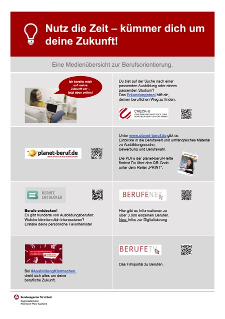 aktuell ist das Beratungsangebot zur Beruflichen Orientierung am MTG in Zusammenarbeit mit der Agentur für Arbeit stark von Corona beeinflusst. Aber natürlich ist auch in dieser Zeit ein Unterstützungs- bzw. Beratungsangebot wichtig - vielleicht sogar besonders wichtig! Dazu finden Sie in dem angehängten Schreiben der Bundesagentur für Arbeit, dem ebenfalls angehängten Flyer über Medienangebote und auf der Seite Berufsorientierung wichtige Informationen. Ich lade Sie herzlich dazu ein, das Angebot für sich bzw. Ihre Kinder wahrzunehmen.
