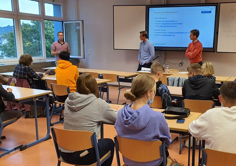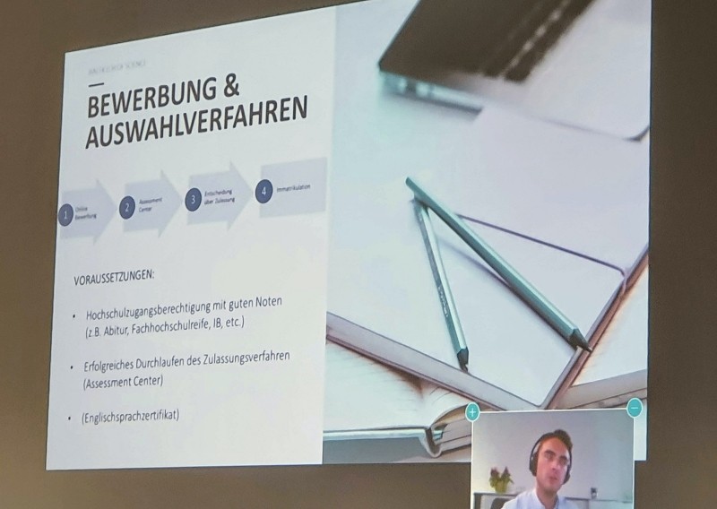 Eine breit gefächerte Auswahl von 30 Referentinnen und Referenten stellte ihre Behörde, ihr Unternehmen oder ihre Hochschule vor. Darunter präsentierten sich sowohl lokale Betriebe (z.B. Stakpure, Reuffel) und Hochschulen (z.B. FH Koblenz, WHU Vallendar) als auch internationale Einrichtungen bzw. Unternehmen (z.B. Merck – inkl. des humanoiden Roboters Pepper). Von A wie ADG über M wie Medien bis zu Z wie Zoll war (fast) alles dabei. Besonders gefragt waren in diesem Jahr Psychologie, aber auch Informatik, Pharmazie, Jura und Journalismus. Weitere interessante und gelungene Vortragsangebote boten die Macromedia-Hochschule (Köln), das Finanzamt und die Polizei. Daneben boten die „Senkrechtstarter“ die Möglichkeit, sich generell über Fragen zum Studium und insbesondere das Angebot an verschiedenen Stipendien zu informieren. Besonders flexibel zeigten sich die Referenten der Frankfurt School of Finance & Management, die wegen eines Unfalls auf der ICE-Strecke Frankfurt - Köln leider nicht persönlich anreisen konnten. Sie organisierten kurzerhand eine ZOOM-Videokonferenz und stellten so aus der Ferne ihre Bachelor Studiengänge vor.