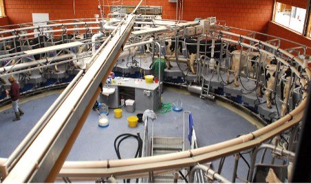 Auf dem Schönberger Hof leben rund 300 Milchkühe, 200 Jungrinder und 100 Mastbullen. Zweimal pro Tag wird jede Kuh in einem Melkrondell mit 30 Plätzen gemolken. Eine Kuh gibt pro Tag 35l Milch. Die Milch gelangt in eine Molkerei im Umkreis.