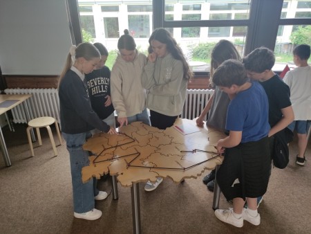 Diese fand am Landesmusikgymnasium statt und bot unseren Schülerinnen und Schülern eine einzigartige Möglichkeit, Mathematik auf eine interaktive und spannende Weise zu erleben.Unsere Klassen 5a, 5b, 5c, 5f und 6c nahmen zusammen mit ihren Mathematiklehrerinnen und -lehrern an diesem besonderen Ausflug teil. Die Ausstellung präsentierte eine Vielzahl faszinierender Exponate, die zum Knobeln und Entdecken einluden. Die Kinder konnten an verschiedenen Stationen experimentieren und spielerisch mathematische Konzepte erforschen. Diese Erlebnisse machten Mathematik greifbar und zeigten, wie vielseitig und spannend das Fach sein kann.Der Besuch der Wanderausstellung war ein voller Erfolg und bereitete den Kindern großen Spaß. Die Begeisterung und das Engagement, mit denen sie die Ausstellung erkundeten, zeigten, dass Mathematik weit mehr ist als nur Zahlen und Formeln. Es war eine wertvolle Erfahrung, die sicherlich einen bleibenden Eindruck hinterlassen hat.Wir danken dem Mathematikum Gießen für diese wunderbare Möglichkeit und dem Landesmusikgymnasium für die Gastfreundschaft. Solche Erlebnisse bereichern den Schulalltag und fördern das Interesse und die Freude an der Mathematik.