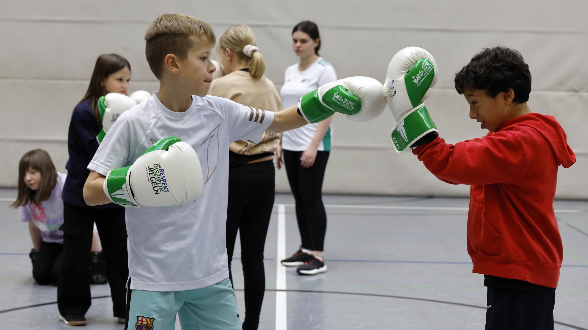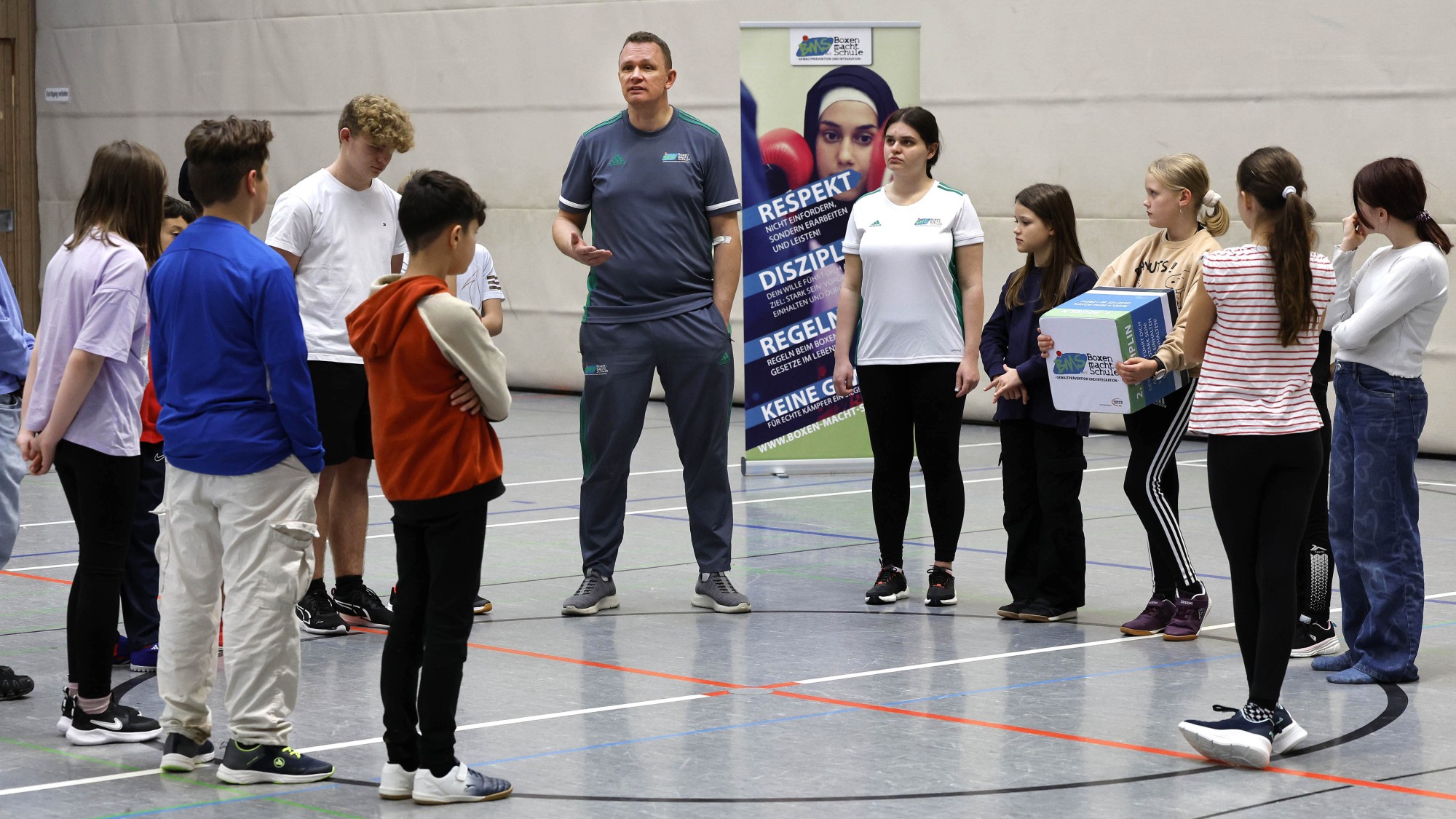 Der Verein "Boxen macht Schule e. V." bietet bereits seit mehreren Jahren eine AG in unserer GTS an. Vor kurzem hat uns der Journalist Bertram Job im Rahmen einer Reportage für den Deutschen Boxverband besucht. Den Artikel dürfen wir mit freundlicher Genehmigung hier veröffentlichen. Fotos: Norbert Schmidt (Sports Photo).
