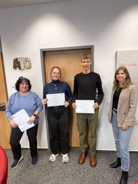Die Schülerinnen und Schüler der Jahrgangsstufen 8 bis 10 hatten im Rahmen der DELF-AG die wertvolle Gelegenheit, ihre sprachlichen Fähigkeiten zu vertiefen und sich optimal auf die Prüfungen vorzubereiten. Mit Stolz dürfen wir verkünden, dass folgende Kandidatinnen und Kandidaten erfolgreich an den DELF-Prüfungen teilgenommen haben: Amelie Brach, Lisa Marie Pletzer und Kolja Rüb.