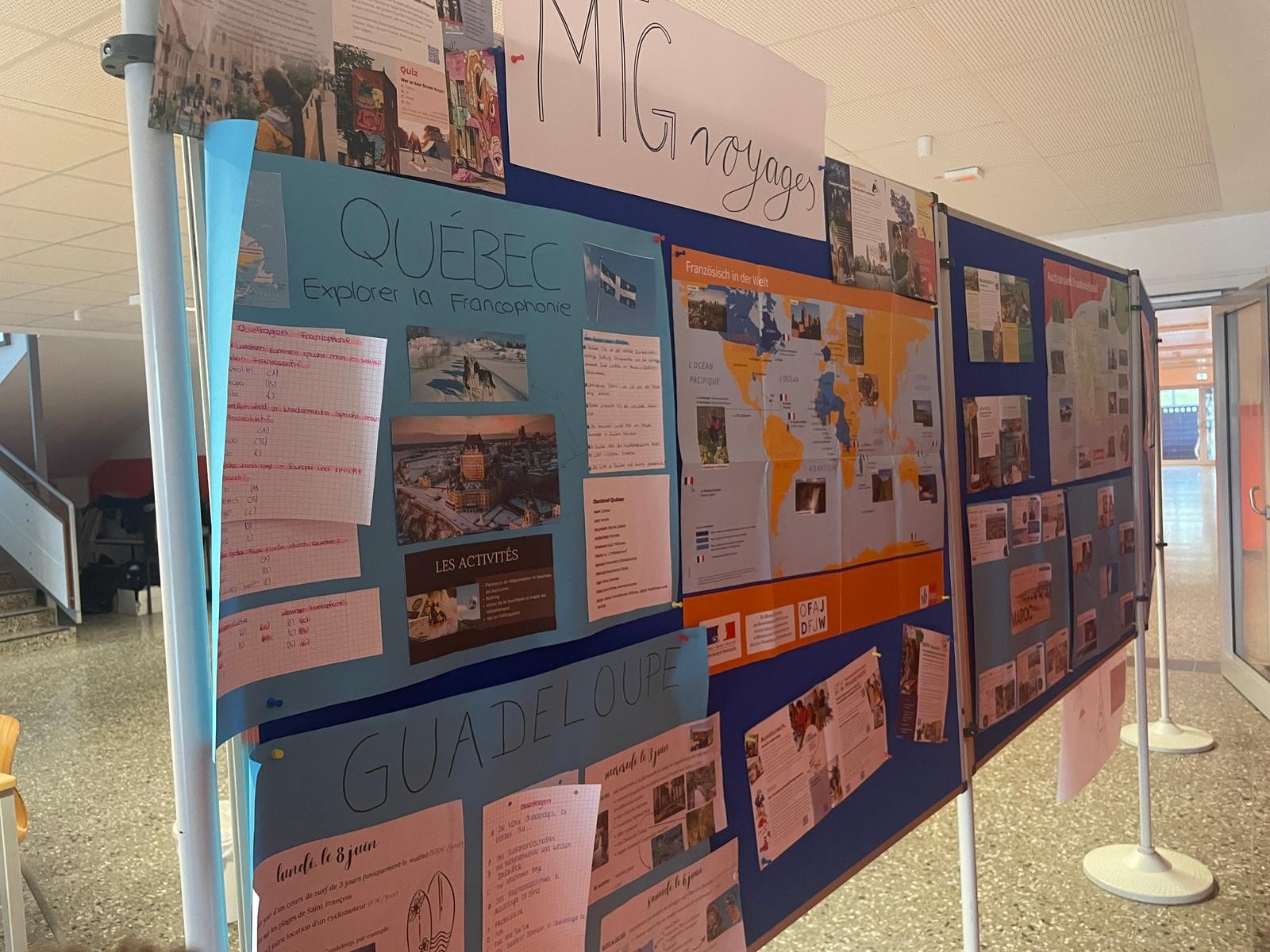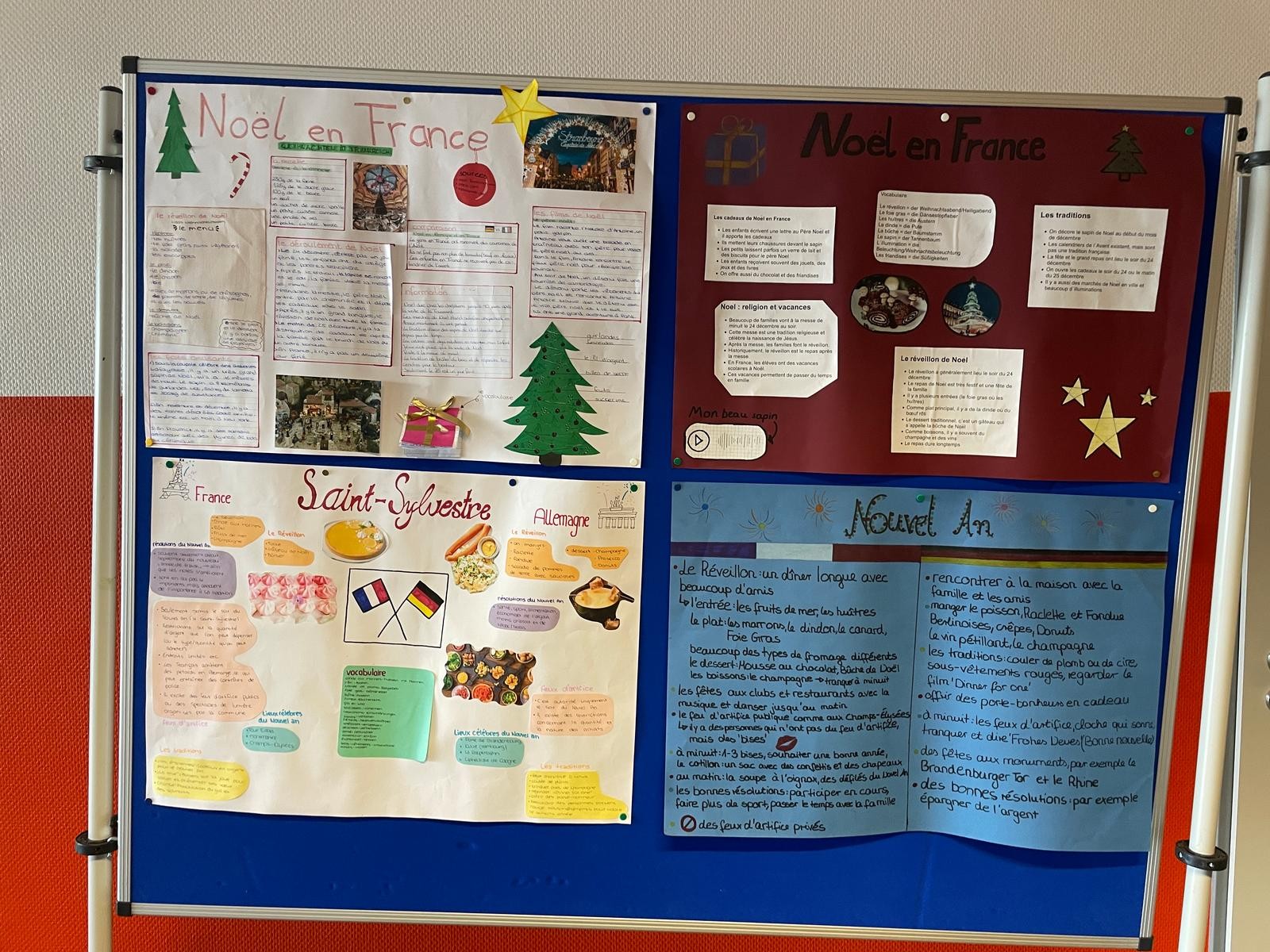 Während der beiden großen Pausen fand unsere Veranstaltung im Lichthof statt. Eine informative Ausstellung rund um das Thema Frankreich, wie bspw. französische Feiertage und die französische Sprache, konnten von den Schülerinnen und Schülern bewundert werden. In einem interaktiven Quiz konnten sie ihr Wissen über die Hintergründe des Deutsch-Französischen Tags unter Beweis stellen. Die Verkaufsstände mit frischen Crêpes und anderen französischen Spezialitäten waren sehr beliebt und sorgten für eine interkulturelle Atmosphäre.
