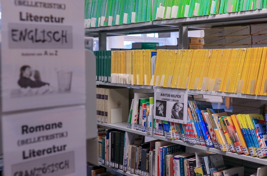 Zum Arbeiten in der Bibliothek oder auch im Unterricht stehen Laptops sowie Tablets in ausreichender Zahl zur Ausleihe zur Verfügung. Unser Bibliothekar, Herr Schäfer, unterstützt die Schülerinnen und Schülern nach Absprache mit Lehrkräften bei Fragen zu Hausaufgaben und bei Rechercheproblemen etc.