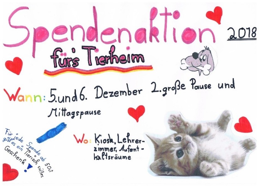 Auch in diesem Schuljahr führte die Tierheim-AG der GTS vor Weihnachten wieder eine Spendenaktion zugunsten des Tierheims in Montabaur durch.