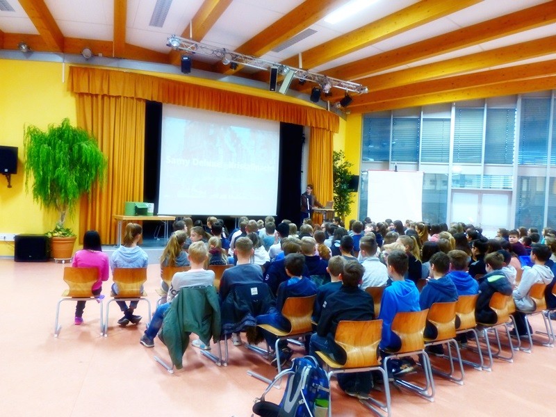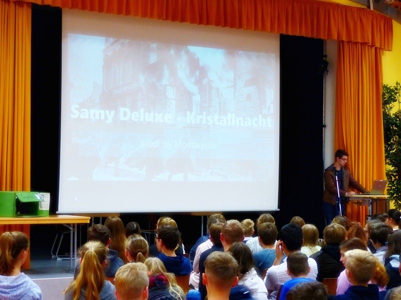 Um das Interesse der Siebtklässler frühzeitig zu wecken, spielten wir die neue „Kristallnacht“-Version von Sammy Deluxe ein und gaben ein paar kurze historische Hintergrundinformationen.