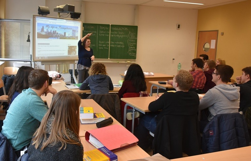 Gleich nach den Weihnachtsferien besuchte uns mit Amy Shirek und Dr. Gerhard Wiesinger eine Abordnung des amerikanischen Generalkonsulats zur Preisverleihung. Megan stellte den Besuchern ihren Blog vor, in welchem sie in die Rolle einer deutschen Austauschschülerin schlüpft, uns gedanklich mit auf die Reise nach Pennsylvania nimmt und ihre Erfahrungen und Eindrücke aus ihrer neuen Heimat kurz vor der Wahl teilt. Im Anschluss an Megans Präsentation gab Fulbright Teaching Assistant Amy Shirek Einblicke in die USA nach der Wahl. Mit ihr diskutierten die SchülerInnen Befürchtungen, Hoffnungen und mögliche Auswirkungen auf nationaler wie globaler Ebene, die mit der Wahl Trumps entstanden sind.