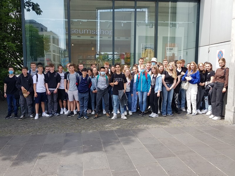 Umso erfreulicher war es, dass die 10a und 10b am 3. Juni 2022 wieder mit Herrn Giloy und Herrn Breuer ins Haus der Geschichte nach Bonn fahren konnten. Bei der Tagesexkursion durchliefen wir Schüler die Jahre von 1945 bis heute, was für uns alle sehr spannend und informativ war. Vor allem weil wir viele Exponate, wie Karikaturen, Plakate und Bilder, aus dem Geschichtsunterricht wiedergefunden haben und es somit mit unserem Wissen verknüpfen und es noch erweitern konnten. Am Ende unseres Besuches haben wir uns auch noch die aktuelle Wechselausstellung zum Thema „Heimat“ angeschaut. Das Interessante dabei war, dass wir interaktiv Teil der Ausstellung sein konnten, wie z.B. durch das Erraten verschiedener Gerüche, die wir mit Heimat verknüpfen.
