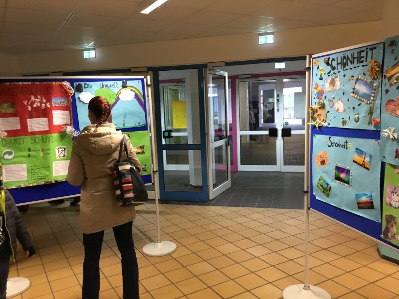 An unserem diesjährigen „Tag der offenen Tür“ haben wir zahlreiche, nicht nur informative, sondern auch bunte, künstlerisch-kreative Lernprodukte unserer Schülerinnen und Schüler ausgestellt. In den letzten Schuljahren kamen nämlich einige tolle Arbeitsergebnisse zusammen, die jetzt endlich auch einmal der Öffentlichkeit, den Viertklässlern und ihren Eltern, gezeigt werden konnten.