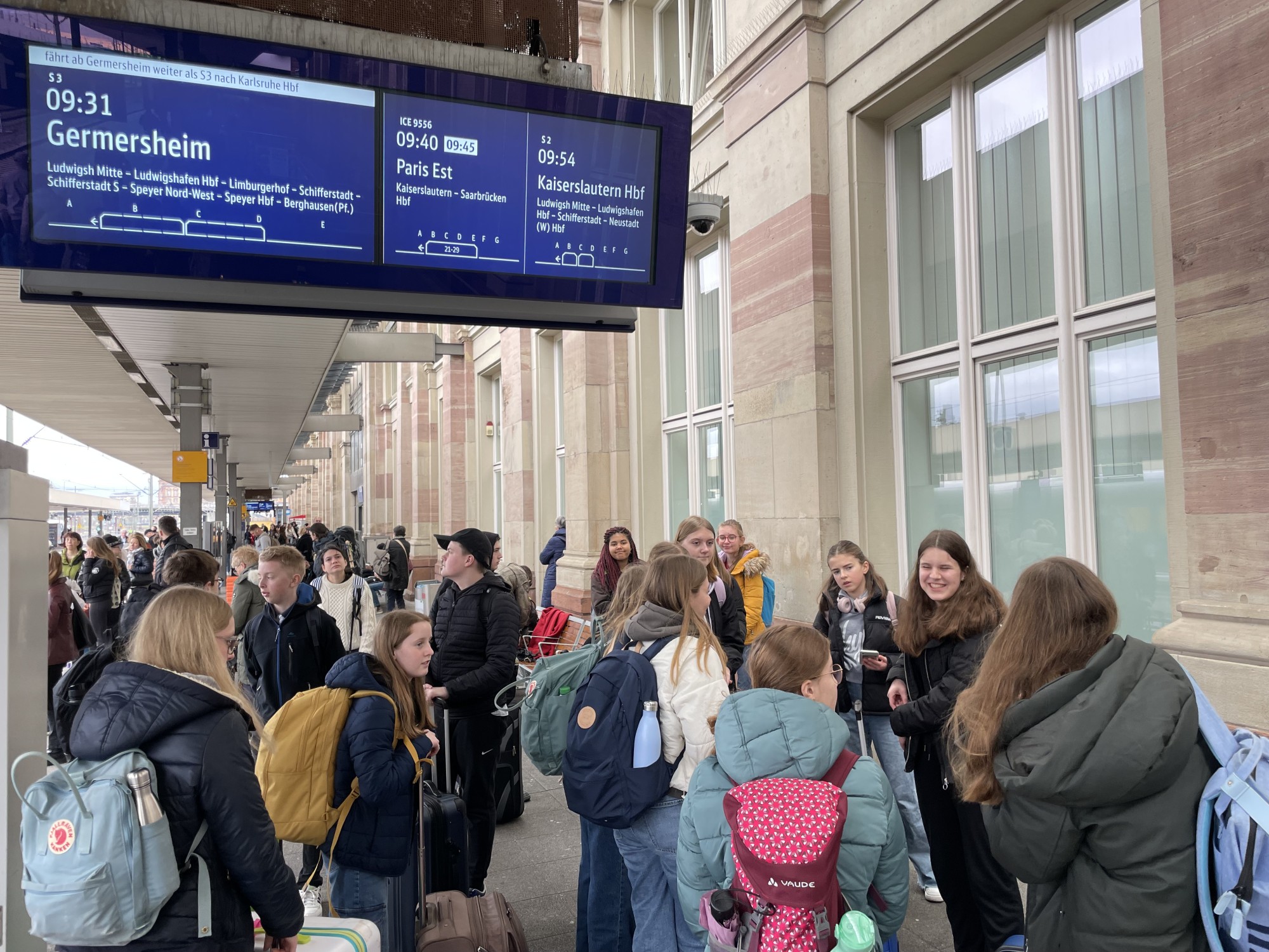Am Dienstag, dem 30. April 2024, versammelten wir uns am Bahnhof, um unsere französischen Austauschpartner zu empfangen. Der Zug sollte laut Fahrplan um 18 Uhr in Montabaur eintreffen, hatte jedoch Verspätung. Einige von uns nutzten die Zeit, um im Outlet noch schnell die ein oder andere Kleinigkeit für unsere Gäste zu besorgen. Gegen 19:15 Uhr machten wir uns in Richtung Gleis auf und kurz darauf trafen unsere Austauschpartner ein. Die Freude war groß, und es war schön, alle wiederzusehen. Später ließen wir den Abend in unseren Familien gemütlich ausklingen.