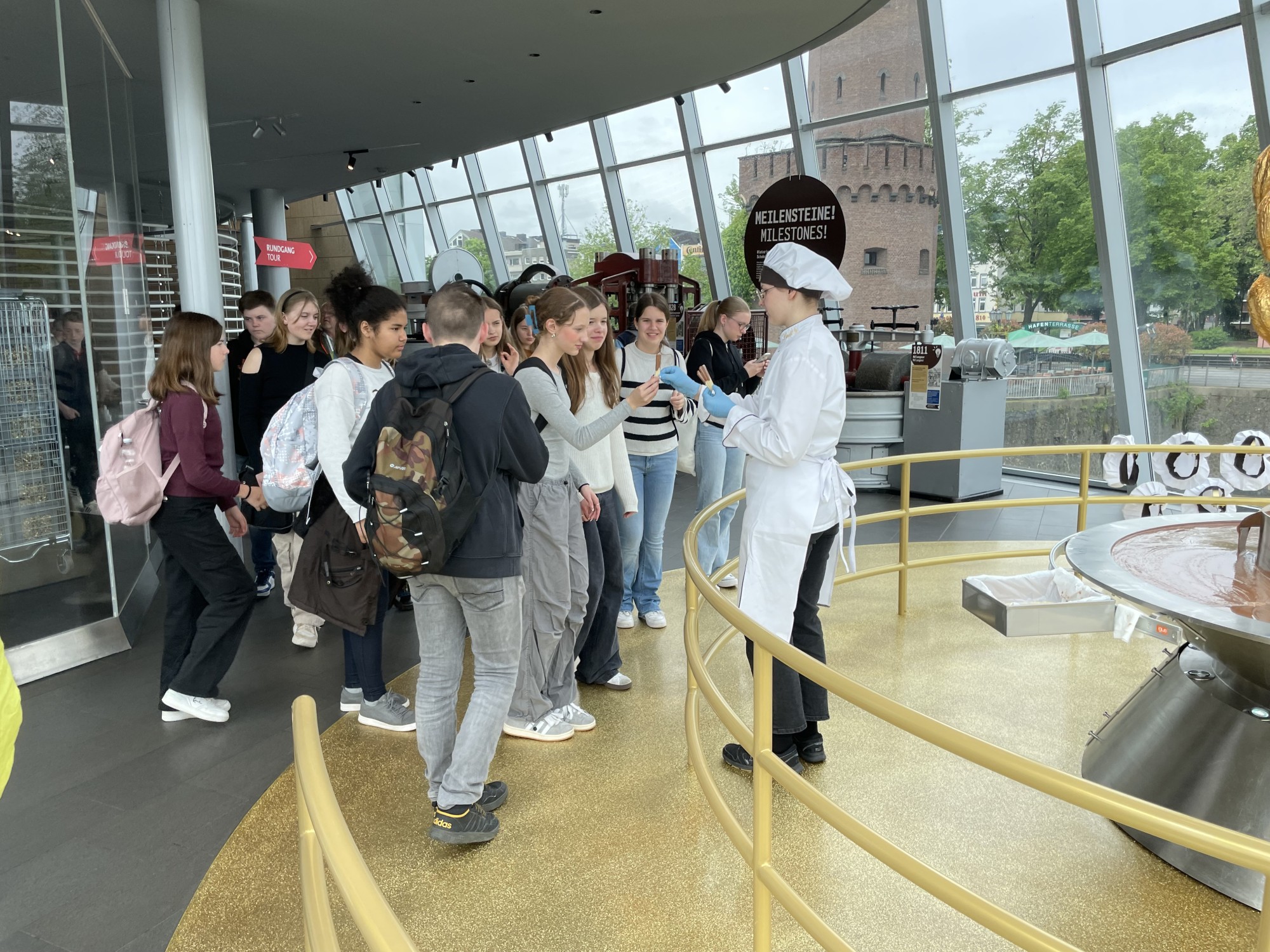 Montags fuhren wir ins Schokoladenmuseum in Köln. Die Führung war äußerst interessant, und zwischendurch konnten wir am Schokoladenbrunnen leckere Schokolade probieren. Am Ende testeten wir die einzelnen Bestandteile der Lindt-Schokolade und waren erstaunt über die Aromen. Danach besichtigten wir den imposanten Kölner Dom und erhielten etwas Freizeit, die die meisten zum Shoppen nutzten.