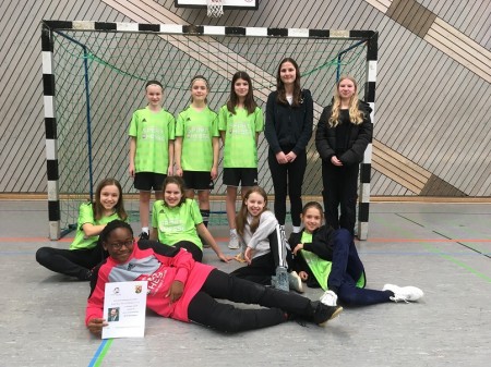 (hintere Reihe von links nach rechts): Klara Eberz (6c), Marie Brach (7c), Amani Slijvar (6g), Laura Minnig (10d) und Lina Hasselbach (9b) als Betreuerinnen