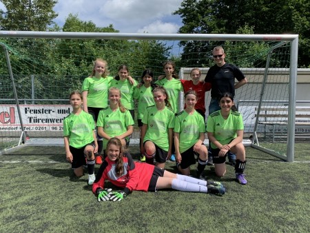 Dass im Juni in Koblenz bereits am frühen Vormittag sehr hohe Temperaturen herrschen können, mussten unsere Ältesten im Wettkampf I (Jahrgänge 2003 bis 2006) bei ihrem Regionalfinale erfahren. Auch wenn das Team in dieser Konstellation noch nie zusammen gespielt hatte und einige Spielerinnen angeschlagen in das Turnier gingen, hielten unsere Spielerinnen einer spielerisch überlegenen Mannschaft des gastgebenden Gymnasiums auf der Karthause energisch gegen. Erst mit dem Schwinden der Kräfte konnten die Koblenzerinnen eine überragende Annika Feuersänger im Tor überwinden und mit dem Schlusspfiff das 0:2 aus Sicht unserer Mannschaft erzielen. Im bedeutungslosen Spiel gegen das Gymnasium vom Calvarienberg aus Ahrweiler waren die MTGlerinnen zwar feldüberlegen, es zeigt sich aber der Kräfteverschleiß, so dass es am Ende 0:0 stand. Der zweite Platz ist ein Erfolg und ein schöner Abschied für Jana, Laura und Lara, die das letzte Mal das Trikot des MTGs überstreifen durften.
