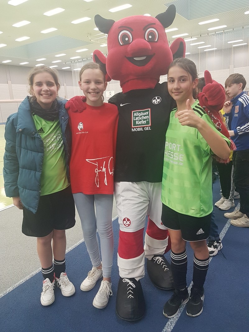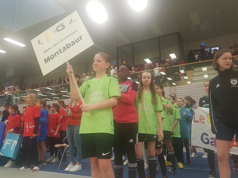 Nach der Eröffnung des Turniers durch die rheinland-pfälzische Ministerpräsidentin, Malu Dreyer, musste unser Team im ersten Spiel direkt gegen den Turnierfavoriten aus Kaiserslautern antreten. Das Fehlen unserer etatmäßigen Stürmerin, Mia, machte sich stark bemerkbar, da es gegen einen spielerisch sehr starken Gegner kaum Entlastungsangriffe gab. Nach einem 0:3 musste das nächste Spiel gegen das Gymnasium Daun bereits die Entscheidung über den Einzug ins mögliche Halbfinale bringen. Aus einer sicheren Abwehr gelang es immer wieder schnelle Konter zu fahren, so dass am Ende ein überzeugter 3:0 Sieg durch Tore von Carlotta Rücker und Edda Schenk den Einzug in die Runde der letzten Vier sicherte.