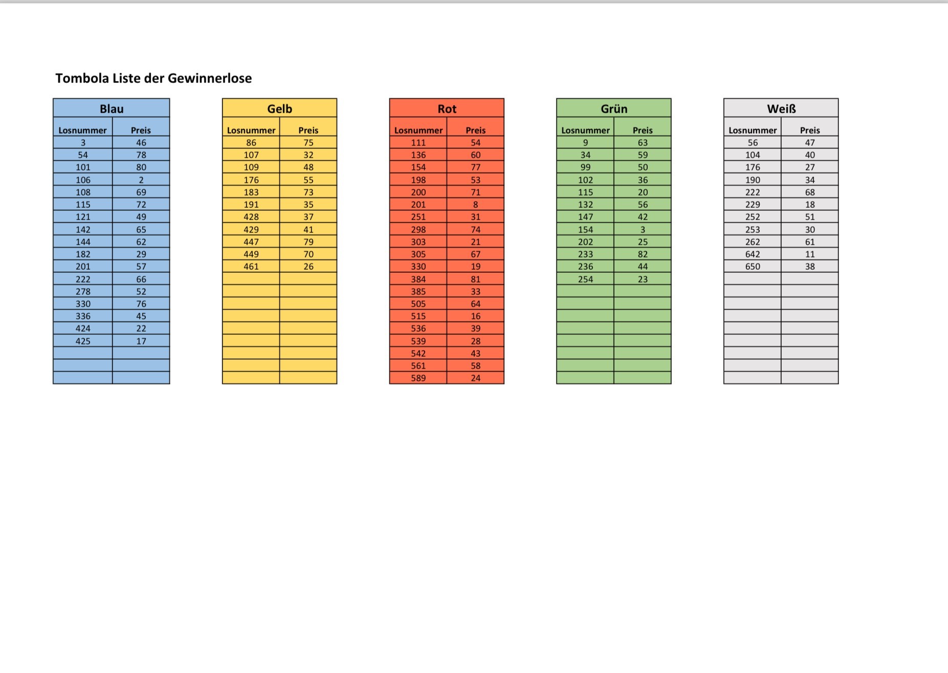 anbei könnt ihr die Gewinnerlose unserer Tombola vom Schulfest einsehen. Eure Preise könnt ihr bis zum 12.07.2024 im Sekretariat gegen Vorzeigen eurer Lose abholen.