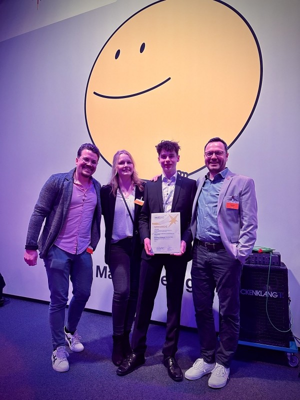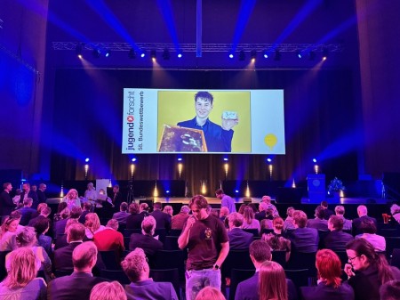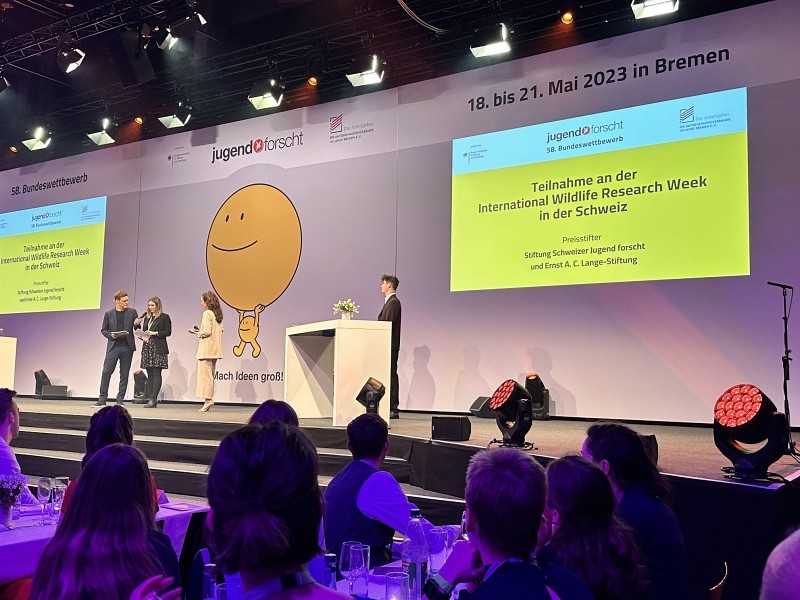 Die Jury in Bremen war sehr angetan von Julians Projekt – das Jurygespräch hätte Julian gerne noch verlängert. Am Samstagabend gab es dann die ersten Preise: Auf der Sonderpreisverleihung kamen Jungforschende, Alumni, Jury, Lehrkräfte, Sponsoren und Ehrengäste zu einem Dinner zusammen und hier konnte Julian den Sonderpreis "Teilnahme an der International Wildlife Research Week” gewinnen, sodass es für ihn Ende Juni für eine Woche in die Schweiz geht. Das Jury-Betreuerteam bestehend aus Julia Zander, Dominik Höhn und Kevin Jösch freuten sich mit Julian und der Erfolg wurde zu den Klängen einer Jufo-Allstars-Band gefeiert.