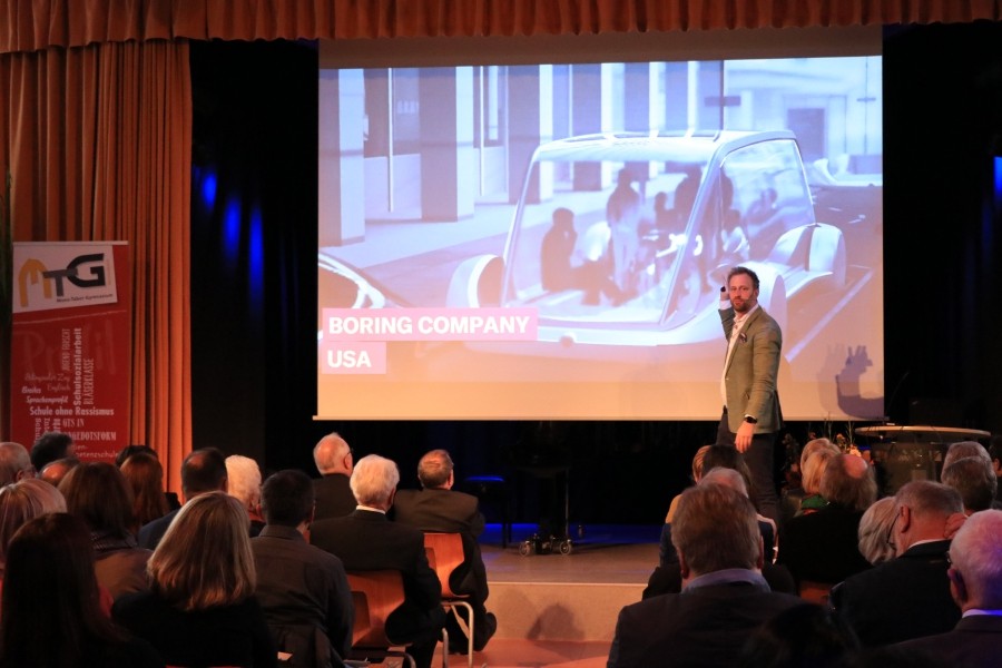 Abschließend ging der Blick in die Zukunft, mit einer rasanten Präsentation des Hamburger Trend- und Innovationsforschers Nick Sohnemann. Wenn man ihm glauben darf, wird die fortschreitende Technisierung und Digitalisierung unserer Welt dazu führen, dass es bald nur noch selbstfahrende Autos gibt. Wir werden mit unserer Stimme Rechnungen bezahlen, Roboter werden uns die Einkäufe ins Haus bringen, und wir müssen nur noch 20 Stunden in der Woche arbeiten und können ansonsten unser Leben genießen. Ein Blick ins Publikum zeigte, dass diese Vision durchaus für Gesprächsstoff sorgte, und beim anschließenden Imbiss nutzen einige Gäste die Gelegenheit zur kontroversen Diskussion mit dem Referenten.