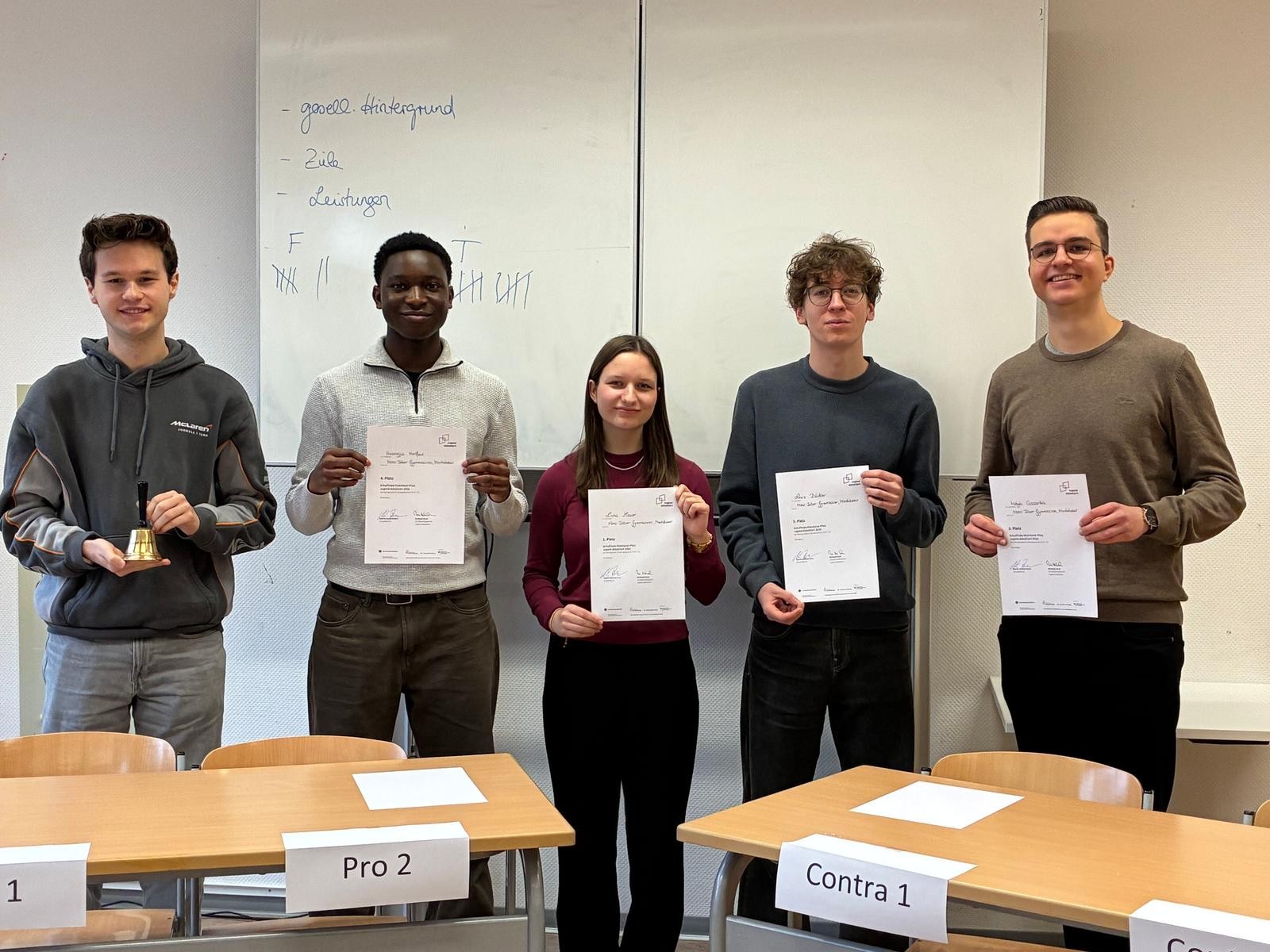 Die Siegerinnen und Sieger vertreten das MTG am 29. Januar im Regionalfinale Lahn-Westerwald. Herzlichen Glückwunsch zum Einzug in die nächste Runde und viel Erfolg für die anstehenden Debatten!