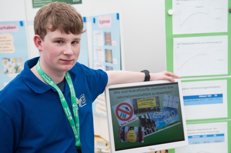 Anton Klersy (9e) widmete sich auch einem Thema, das viele angeht: Er untersuchte die Energiebilanz von verschiedenen Kraftstoffen, z.B. dem berüchtigten Super E10 mit einem selbst gebauten Kalorimeter. Damit setzte er sich gegen alle anderen im Bereich Schüler experimentieren Chemie durch und wird unsere Schule beim Landeswettbewerb im April in Ingelheim vertreten! Darüber hinaus wurde die Arbeit noch mit dem "Sonderpreis für erneuerbare Energien" ausgezeichnet und Anton für seine hervorragende Arbeit damit doppelt belohnt.