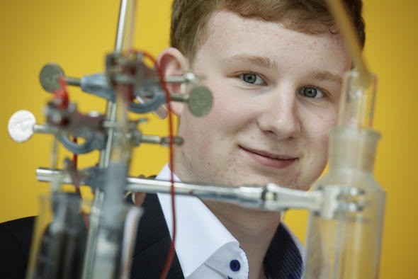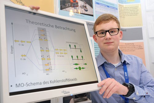 Trotz der sehr großen und vor allem harten Konkurrenz überzeugte er die Chemiejury mit seinem Projekt und seinem ausgezeichneten Fachwissen über die elektrochemischen Vorgänge bei der Reduktion von Kohlenstoffdioxid. In der Laudatio von Dr. Dirk Demuth, dem Leiter der BASF-Katalyseforschung, wurde vor allem seine besonders hohe fachliche Kompetenz gelobt, welche weit über dem schulischen Niveau liegt.