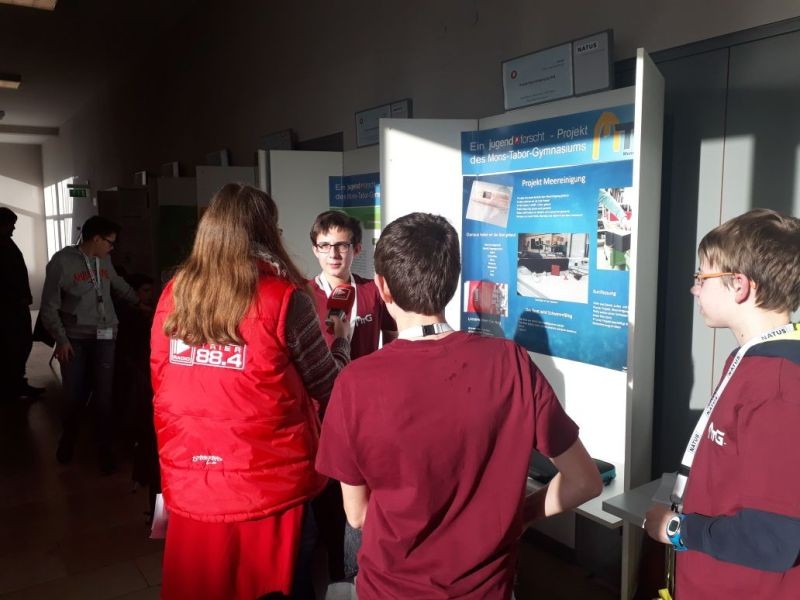 Über unsere Teilnahme am ersten regionalen Wettbewerb in Neuwied hatten wir bereits kurz berichtet (Hier geht es zum Bericht). Hier möchten wir noch gerne die Themen der einzelnen Projekte nachreichen: Astrid Kerrut (13): "Das Zytotoxin Allicin - Evaluierung seiner Eignung zur Oberflächendesinfektion im Vergleich zu biologischen Flüssigreiniger", Lotte Diester (13): "Auswirkungen von Alkohol unterschiedlicher Konzentrationen auf Frischhefe", Julia Quirmbach (13): "Einfluss unterschiedlicher Temperaturen auf das Wachstum von Edelschimmel bei der Camembertherstellung", Madeleine Thörner (10d), Celine Roth (10c) und Lars Berger (10d): "Herstellung von eigener Wimperntusche", Dominik Eidt und Elias Neundter (beide 10d): "Behindertengerechtes Montabaur?", Till Brenner und Adrian Martens (beide 10e): "Elektrolumineszens".