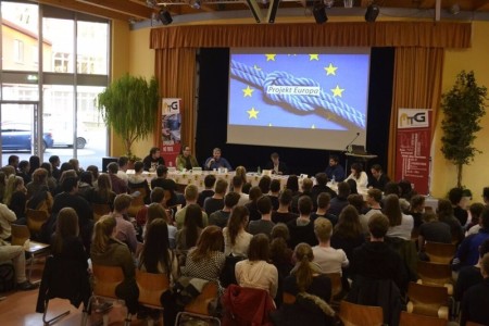 An der Diskussion, die sich um die vorher von der SV ausgesuchten Themen Europa und die Legalisierung von Cannabis drehte nahmen Vertreter der Jugendorganisationen der politischen Parteien CDU (Junge Union), SPD (Jusos), FDP (Junge Liberale), Bündnis 90/Die Grünen (Grüne Jugend), Die Linke (Linksjugend solid‘) und AfD (Junge Alternative) teil.