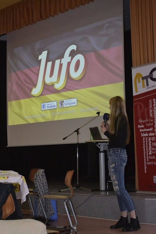 Am Donnerstag, dem 6. April 2017 fand in der gut besetzten Aula des Mons-Tabor Gymnasiums das Jugendforum Politik statt. Das Jufo ist ein Debattenformat im „amerikanischen Stil“, was bedeutet das politischen Bildung und Entertainment etwa durch Showelemente wie Videos, Musikjingles und Designs verknüpft werden. Eingeladen waren die Schüler des MTG sowie weitere Interessierte.