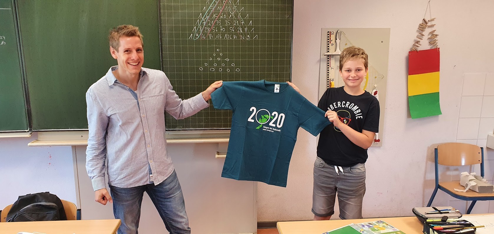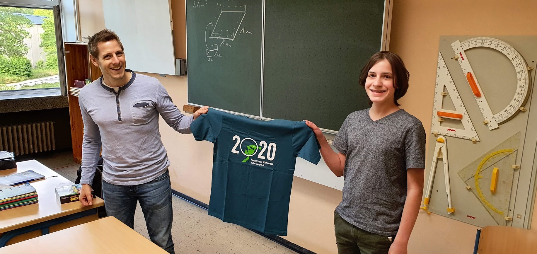 Herzlichen Glückwunsch an alle Bestplatzierten! Aber natürlich auch herzlichen Glückwunsch an alle, die überhaupt die Teilnahme geschafft haben! Ein großer Dank gilt auch dem Förderverein unserer Schule, aus dessen Kasse alle Startgelder gezahlt wurden! Zwischenzeitlich haben wir die beiden T-Shirts, die wir als Schule zusätzlich noch erhalten hatten, in der Orientierungsstufe verlost (eins in der 5 und eins in der 6). Die beiden Gewinner sind Ole Weidenfeller (5d) und Lasse Emmerichs (6d). Unsere Fotos zeigen die beiden mit Ihrem Mathematiklehrer Klaus Beise.