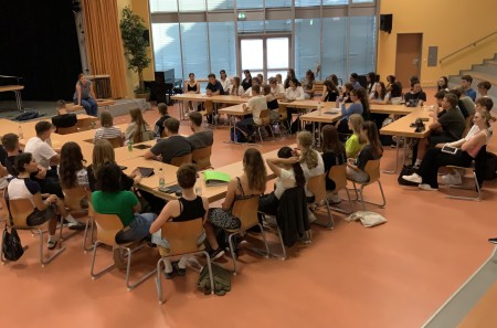 Am 5. September hießen wir Corinna Rüffer (B90/Die Grünen) willkommen. 90 Minuten lang stellte sich Frau Rüffer zusammen mit ihrem Assistenten den wissbegierigen Schülerinnen und Schülern dreier Sozialkundekurse der Jahrgangsstufen 11 bis 13.