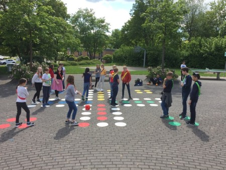 Ich organisierte Bänder in den passenden Farben des Spielfeldes und einen großen Würfel. Eine Woche später weihten wir das Spielfeld ein, alle hatten sehr viel Freude und mussten sich zwischendurch auch mal „ärgern“. Zum Schluss möchte ich Herrn Pleiss danken, dass ich meine Idee verwirklichen durfte, Herrn Meurer fürs organisieren von Bändern und Würfel, meinen Mentorinnen Frau Karwe und Frau Joras für die Unterstützung. Und vor allem muss ich aber dem Hausmeister Christoph Göbel danken, ohne ihn wäre das Spielfeld nicht gerade geworden.