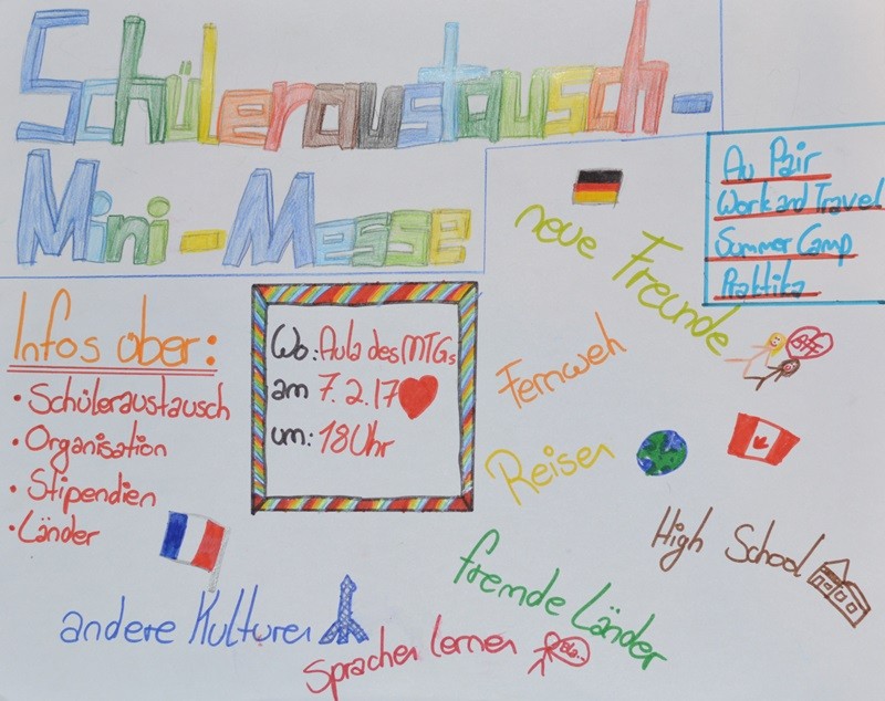 Am 7.2.17 um 18 Uhr findet in der Aula unsere "Minimesse" zum Thema Austausch und Auslandsaufenthalte statt. Kommt bei Interesse doch einfach mal vorbei!