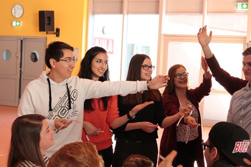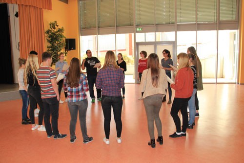 Dazwischen folgten immer wieder die verschiedensten Schauspieltrainings: für den Dialog zwischen Julia und ihrem Vater sollten sie etwa eine Tochter darstellen, die wie eine Klette an ihrem Vater hängt. Einen Monolog Leonatos sollten sie im Gehen und mit wechselnder Laufrichtung vorlesen, um sich die Sprunghaftigkeit von Leonatos Emotionen klarzumachen. Das sorgte bei den Schülerinnen und Schülern insgesamt nicht nur für besseres Verständnis der Dramen und der Charaktere, sondern auch für eine gehörige Portion Spaß. Die zwei Stunden des Workshops waren für den ein oder anderen am Ende fast etwas zu wenig Zeit, aber trotzdem hatten alle in kurzweiliger Atmosphäre viel gelernt und die meisten werden es wahrscheinlich in bleibender Erinnerung halten, wie sie für zwei Stunden auf denkwürdige Weise die Worte des großen britischen Dramatikers William Shakespeare interpretierten.