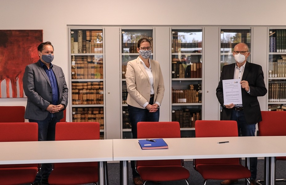 Anlässlich der Unterzeichung der Kooperationsvereinbarung wurden auch konkrete Ideen für die Zusammenarbeit besprochen: So verspricht sich das Mons-Tabor-Gymnasium Unterstützung bei der Konzeptionierung und Einrichtung eines Informatik- und Medien-Zukunftslabors. Die neue Stiftungsprofessur zur Informatikdidaktik, gefördert von der Carl-Zeiss-Stiftung, wird dabei zukünftig ein wichtiger Kooperationspartner sein. Darüber hinaus äußerte Schulleiter Armin Pleiss den Wunsch, besonders interessierten und begabten Schüler*innen einen Einblick in den universitären Alltag zu ermöglichen, um deren Interessen bereits frühzeitig fördern und fordern zu können.