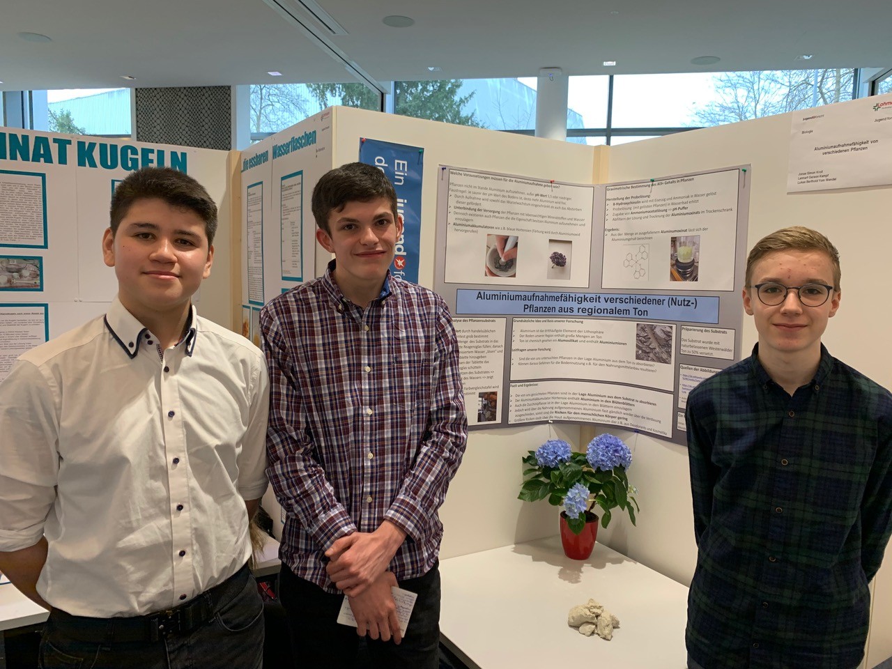 Früh morgens machten wir uns mit vier Projekten auf den Weg. Neben vielen Kontakten, einem exklusiven Einblick in die Forschung am Standort und gutem Essen konnten wir auch folgende Erfolge verzeichnen: Das Projekt Aluminiumaufnahmefährigkeit von verschiedenen Pflanzen (Lennard Kempf, Lukas Wendel, Jonas Kroll; alle 10. Klasse) erlangte eine Urkunde für die erfolgreiche Teilnahme in der Kategorie Jugend forscht Biologie. Einen dritten Platz sicherten sich sowohl die Forscher des Projektes Kostengünstiger und einfach realisierbarer Aufbau einer Kaltplasmafackel (Bastian Schwickert, Lennart Kappler, Paul Mang; alle 10. Klasse) in der Kategorie Jugend forscht Physik und die Forscherinnen des Projekts Spinnenseide – Wunder der Natur (Sarah Bertuleit, Maila Weisbrod, Laura Ickenroth; alle 10. Klasse) in der Sparte Jugend forscht Biologie. Die Jungs mit der Plasmafackel konnten zusätzlich den Sonderpreis Qualitätssicherung durch zerstörungsfreie Prüfung gewinnen. Einen zweiten Platz in der Kategorie Jugend forscht Geo- und Raumwissenschaften sicherte sich Florian Raab (13. Klasse) mit seinem Projekt Auswirkungen der Windenergie, mit besonderem Augenmerk auf die Umwelteinflüsse, er gewann zudem den Sonderpreis Energiewende. Herzlichen Glückwunsch an alle Teilnehmer! Weiter geht’s am Mittwoch mit zwei Projekten in Remagen, bevor sich nach den Ferien, am 29.02., nochmal sechs Projekte in Höhr-Grenzhausen der Jury stellen werden.