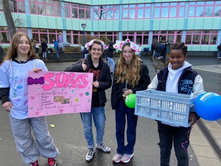 Ein Teil der Spendengelder kam, wie im Vorfeld angekündigt, einer direkt Betroffenen unserer Schulgemeinschaft zu Gute. Der Rest der Summe wurde nun an das Aktionsbündnis „Deutschland hilft“ überwiesen. Insgesamt kam ein vierstelliger Betrag zusammen. In diesem Zusammenhang bedankt sich das Organisationsteam, die AG „Schule ohne Rassismus- Schule mit Courage“, Herr Meurer stellvertretend für die Schulleitung und die SV ganz herzlich für die Spenden und den Einsatz vieler Schüler:innen und einzelner Klassen.