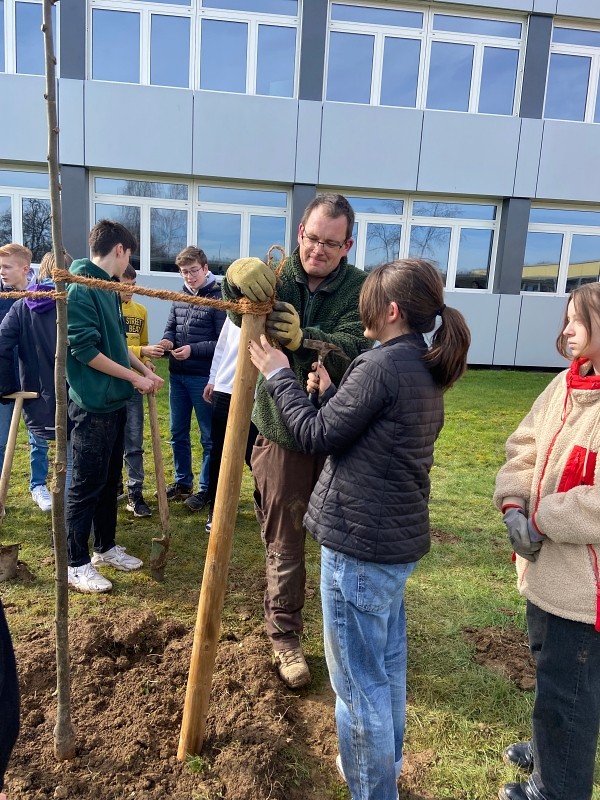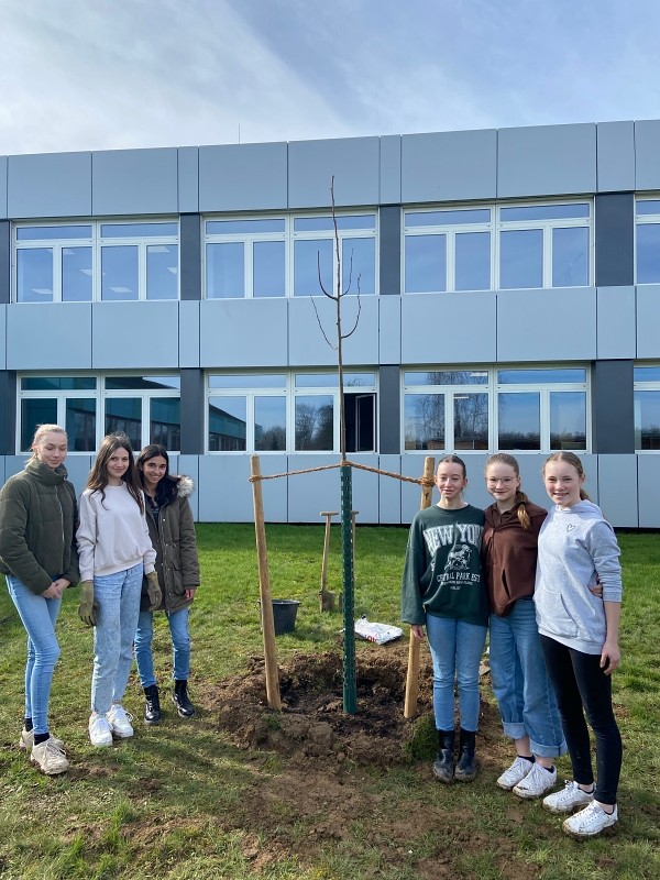 Im vergangenen Schuljahr hat die damalige 7b im Rahmen des Deutschunterrichts Spendengelder gesammelt, um für das Schulgelände Vogelhäuser, Insektenhotels und einen neuen Baum anzuschaffen.
