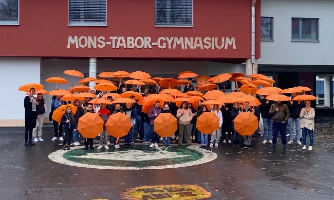 Normalerweise werden am Aktionstag Gebäude und Wahrzeichen orange angeleuchtet, doch dieses Jahr läuft so einiges ein bisschen anders. Und daher reiht sich unsere Schule bei den vielen Firmen, Vereinen und Verwaltungen im Westerwald ein, die sich bei der aktuellen Fotoaktion des Netzwerks Orange beteiligt haben.
