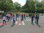 Am 14. Mai war es endlich so weit, das Wetter war sonnig und trocken, somit konnte ich mein Projekt ein „Mensch-ärgere-dich-nicht“ Feld auf den Schulhof zu malen, verwirklichen. Zusammen mit meinen beiden Kurzfilm-AGs malte ich das Spielfeld in XXL auf den Schulhof. Sie hatten sehr viel Spaß dabei, besonders wenn meine Haare mal wieder in der Farbe hingen. Mein Ziel war es, dass die Schüler selbst die Spielfiguren sind und durch Kommunikation untereinander die Gruppengemeinschaft stärken. Ich organisierte Bänder in den passenden Farben des Spielfeldes und einen großen Würfel. Eine Woche …